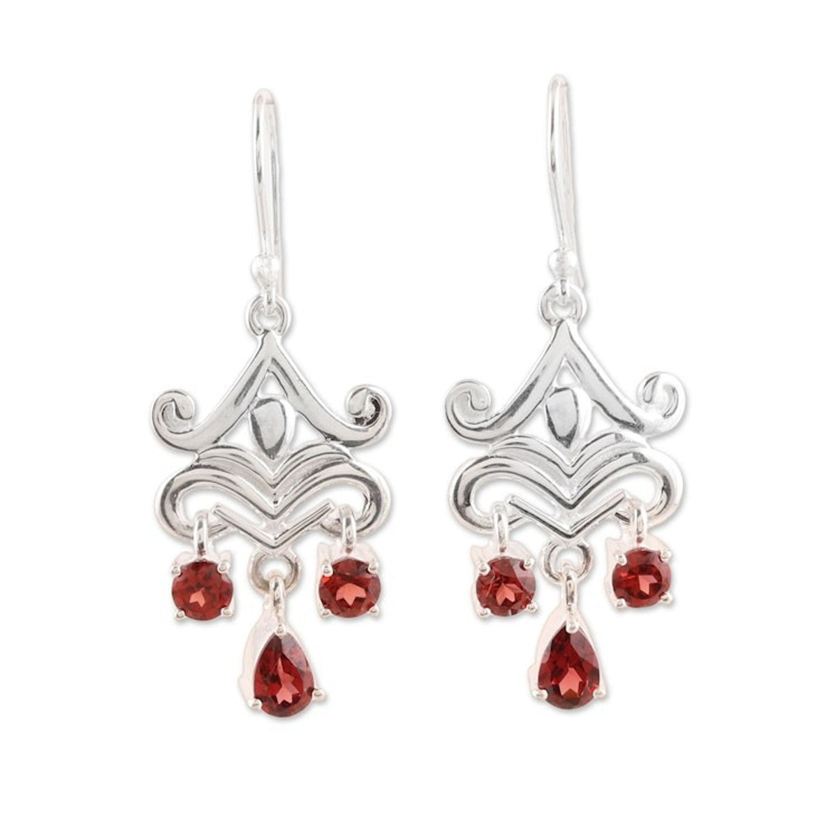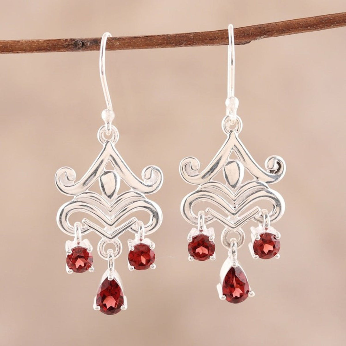 2-Carat Garnet Dangle Earrings from India 'Glimmering Dance'