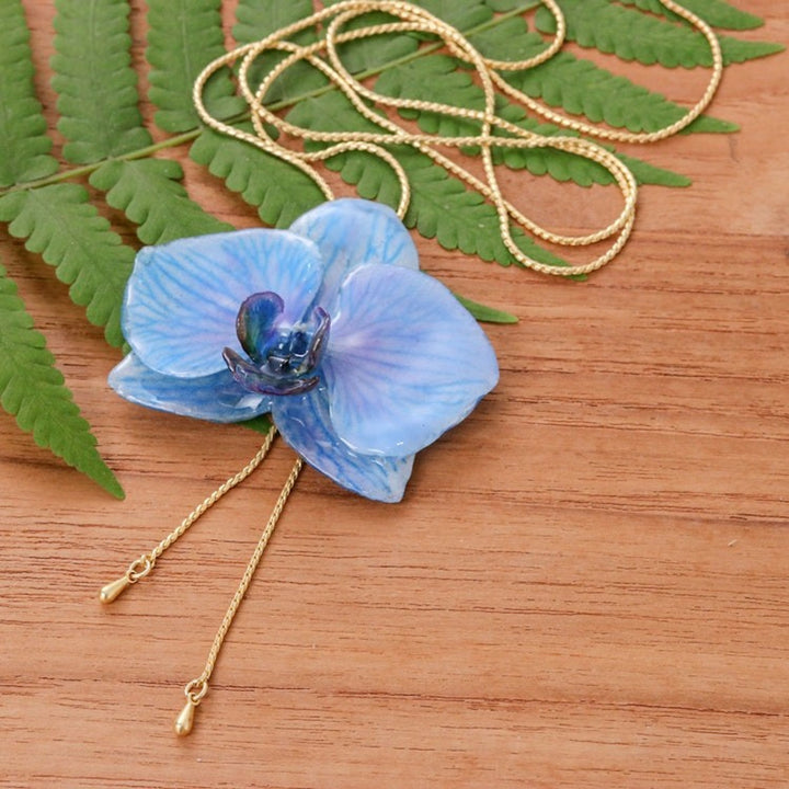 22k Gold-Accented Lariat Necklace with Natural Blue Orchid 'Winter Fantasy'