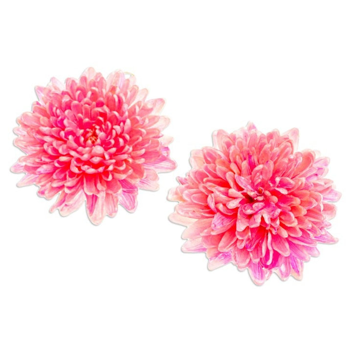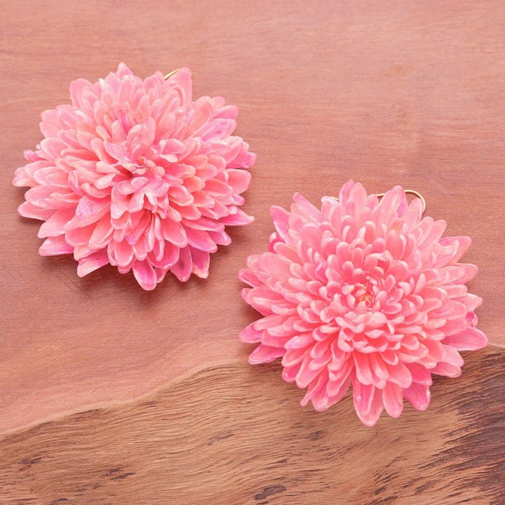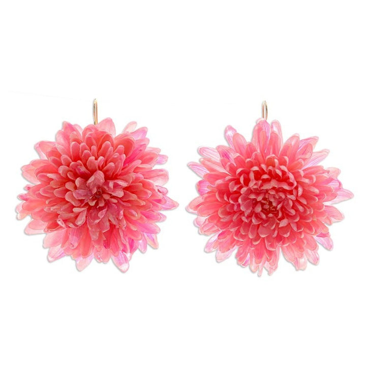 22k Gold-Accented Pink Chrysanthemum Flower Dangle Earrings 'Happy Hot Pink'