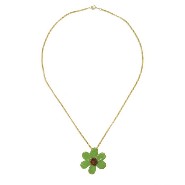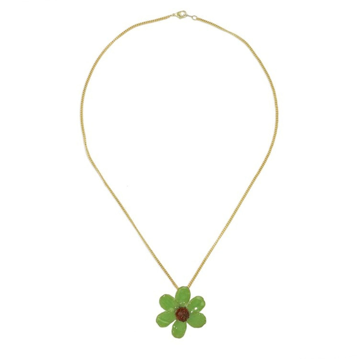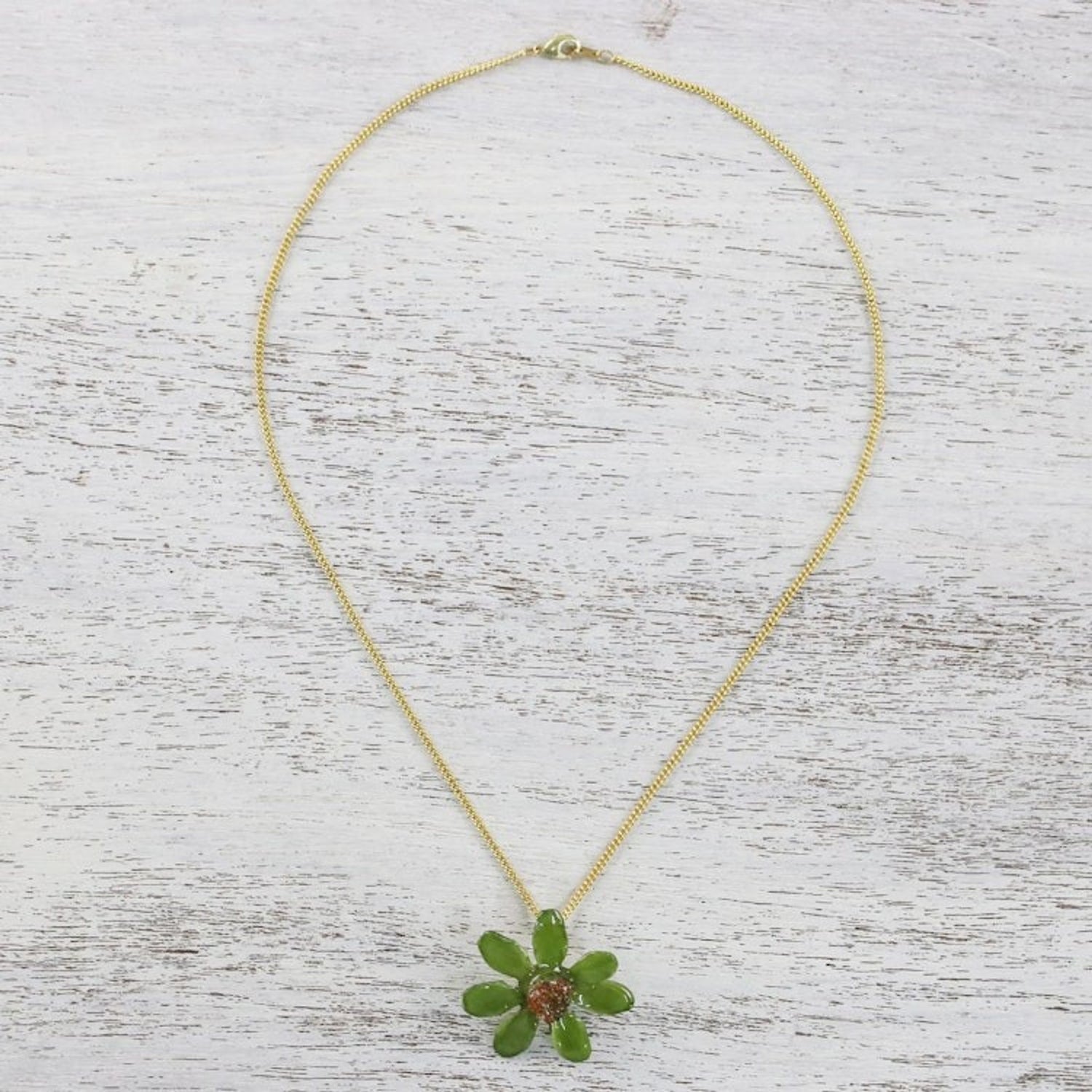 22k Gold Plated Green Zinnia Flower Pendant from Thailand 'Zinnia Charm in Green'