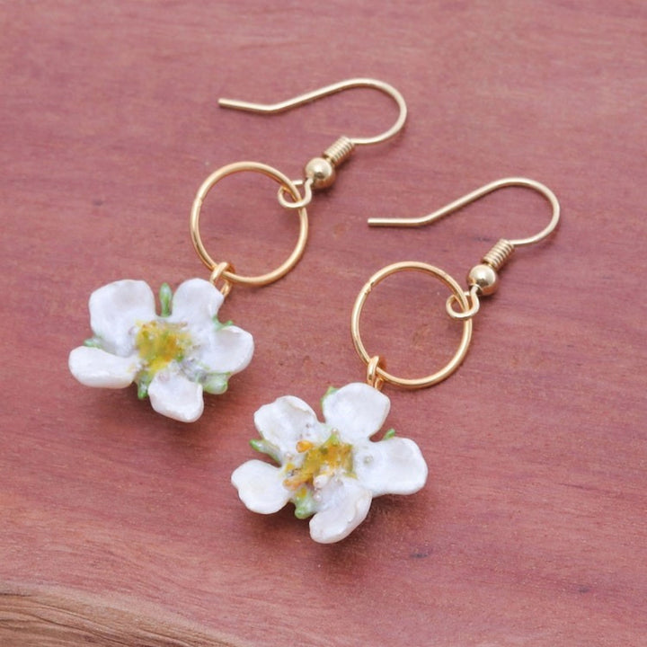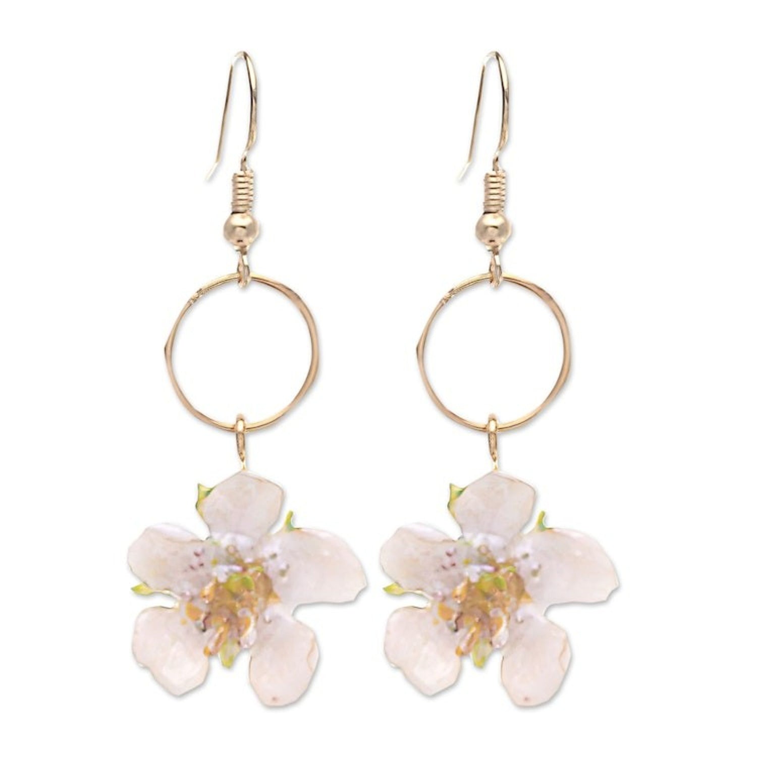 22k Gold-Plated Natural Calabura Flower Dangle Earrings 'Heavenly Celebration'