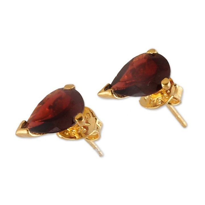 22k Gold-Plated Natural Garnet Stud Earrings from India 'Glorious Scarlet Gleam'