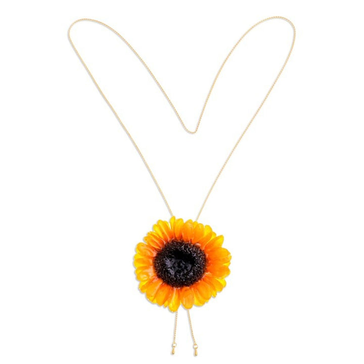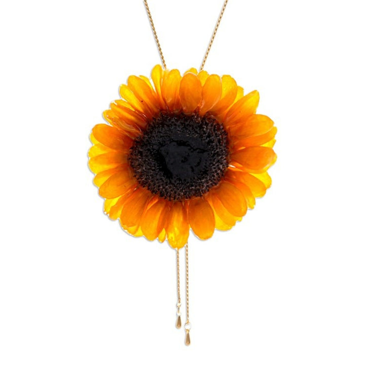 22k Gold-Plated Resin-Coated Sunflower Bloom Lariat Necklace 'Sunflower Era'