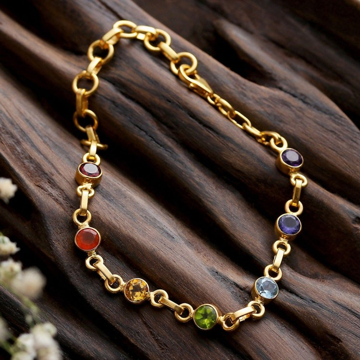 22k Gold-Plated Round Multi-Gemstone Chakra Bracelet 'Inner Universe'