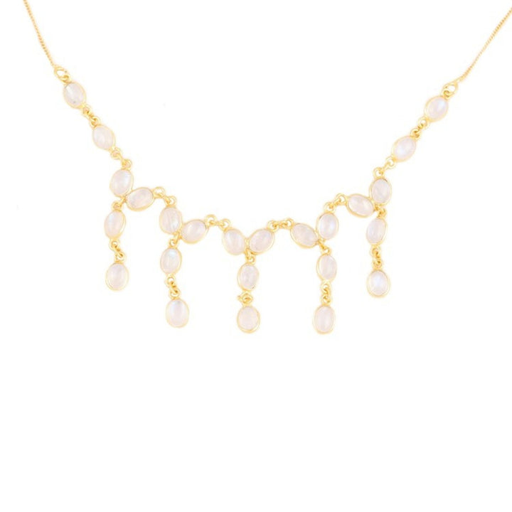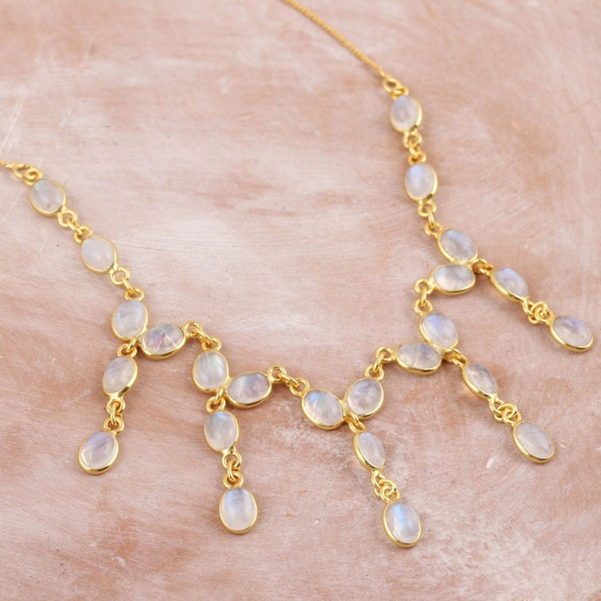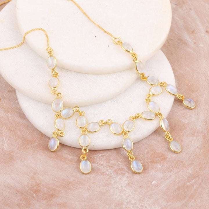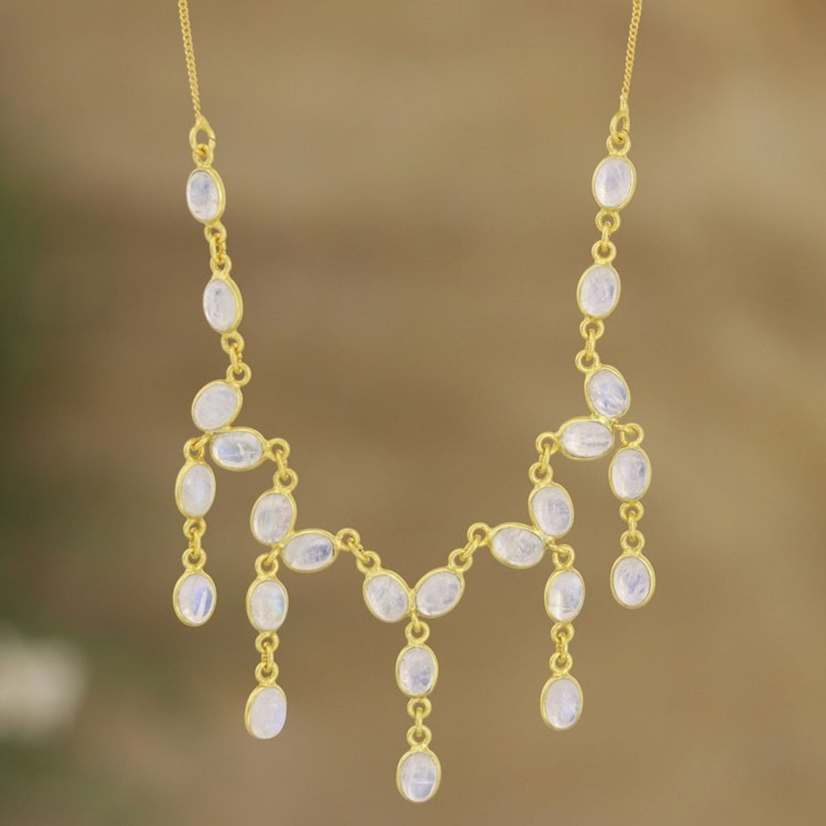 22k Gold-Plated Waterfall Necklace with Rainbow Moonstones 'Creativity Drops'