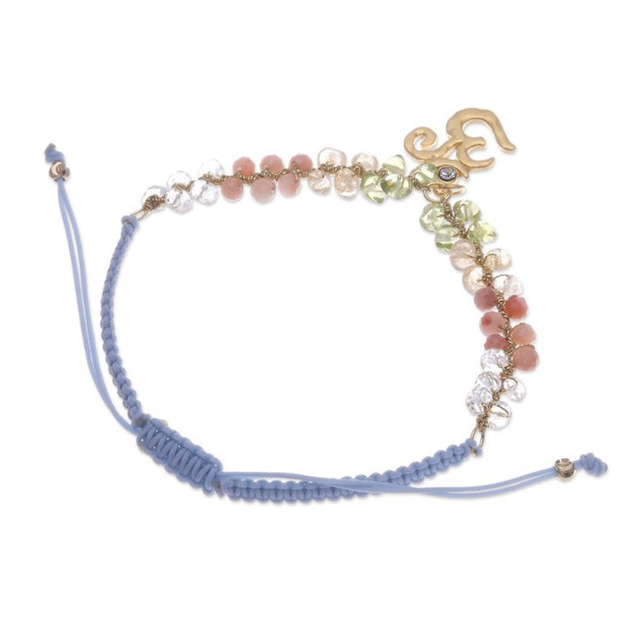 Handcrafted in Thailand from 24k gold-plated 925 sterling silver, various gemstones, and nylon cord, with a combination finish. The adjustable bracelet measures between 6 and 9.8 inches.