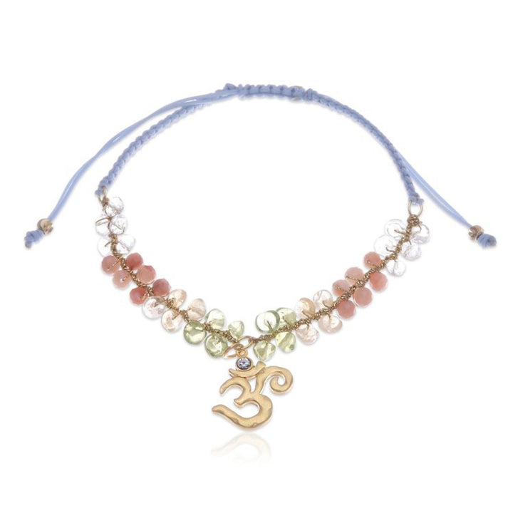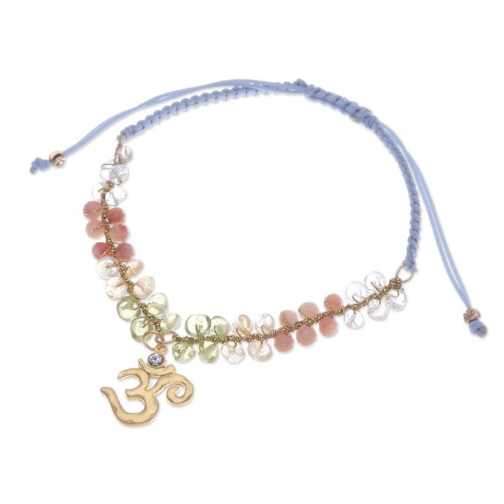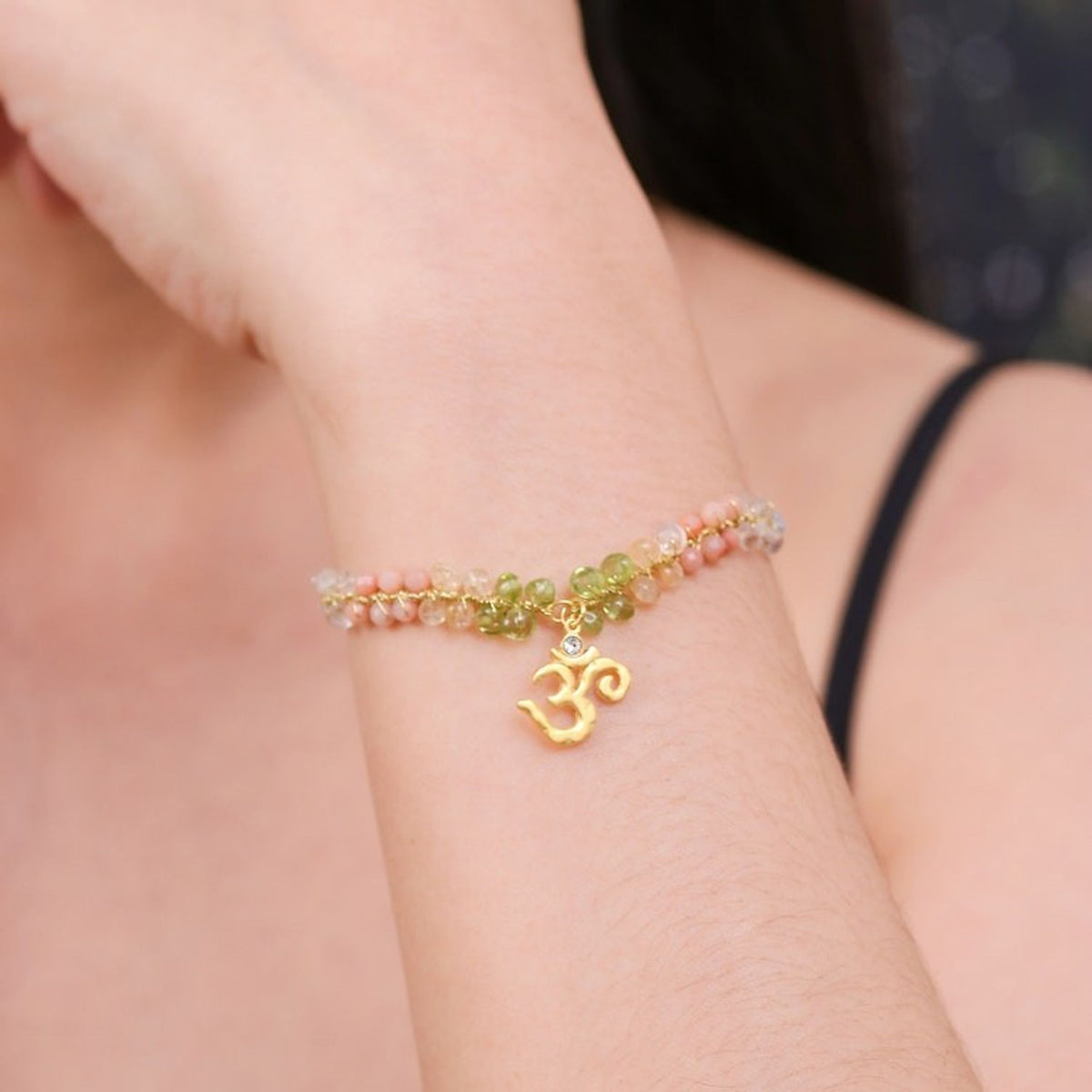 24k Gold-Accented Multi-Gemstone Om Symbol Pendant Bracelet 'Om Glam'