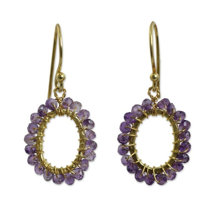 24k Gold Plated Hand Knotted Amethyst Earrings from Thailand 'Treasure'