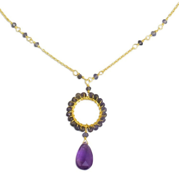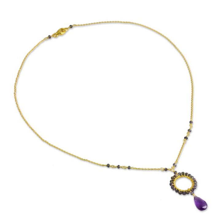 24k Gold Plated Silver Necklace with Iolite and Amethyst 'Iris Rain'