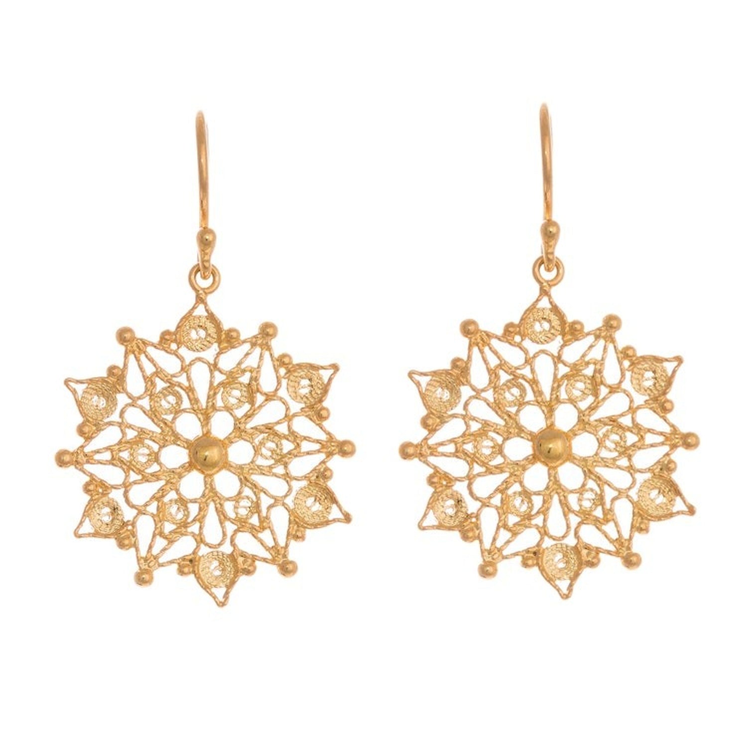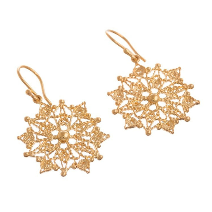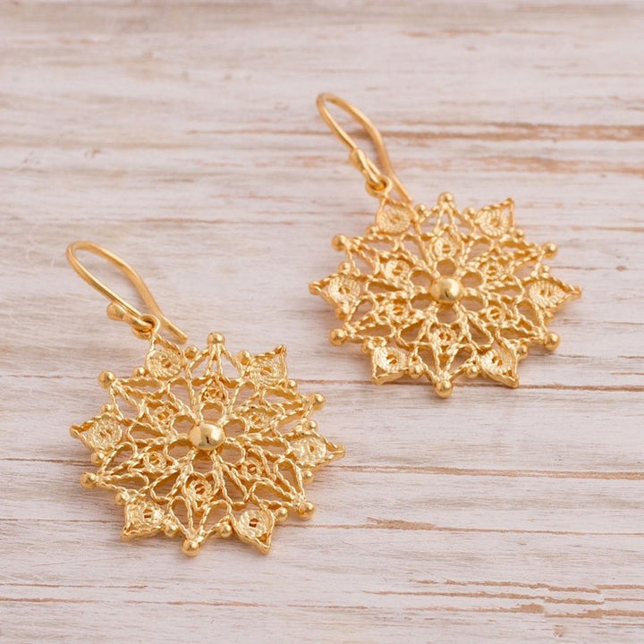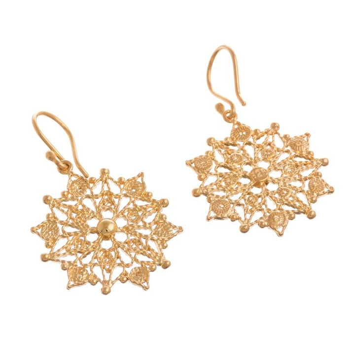 24k Gold Plated Sterling Silver Filigree Dangle Earrings 'Gleaming Mandalas'