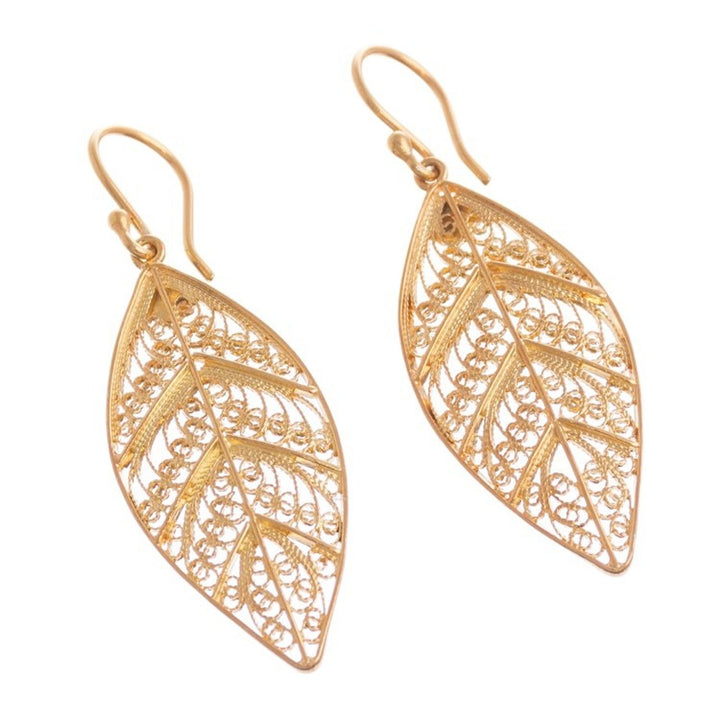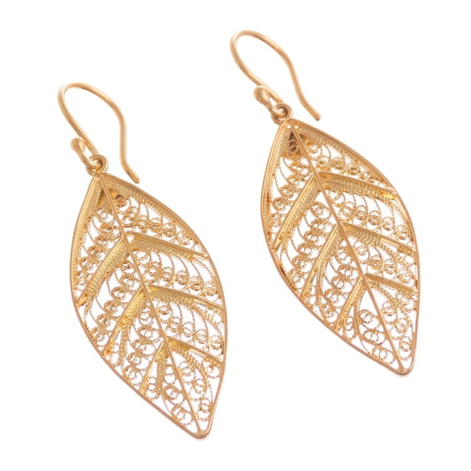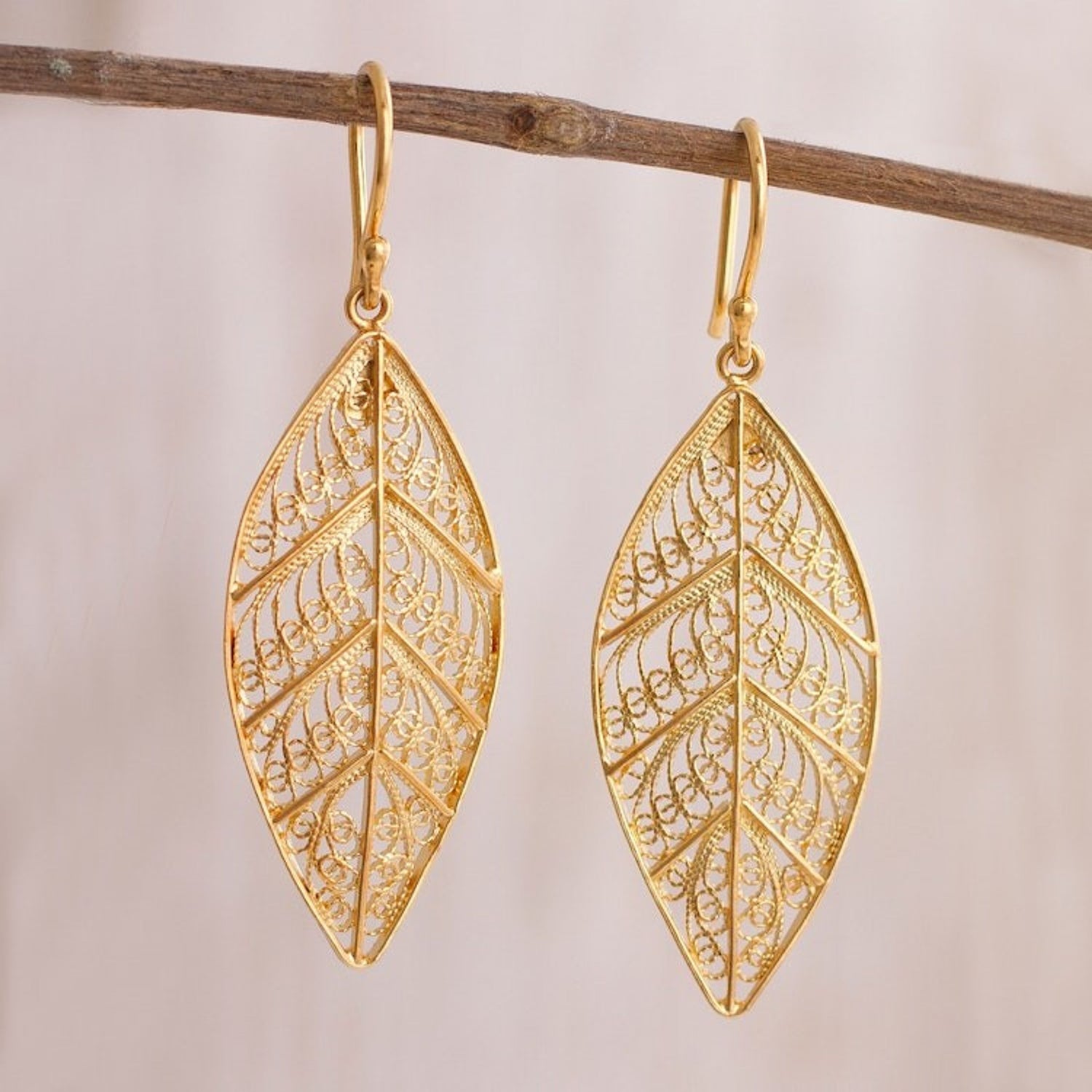 24k Gold Plated Sterling Silver Filigree Dangle Earrings 'Mystery of the Forest'