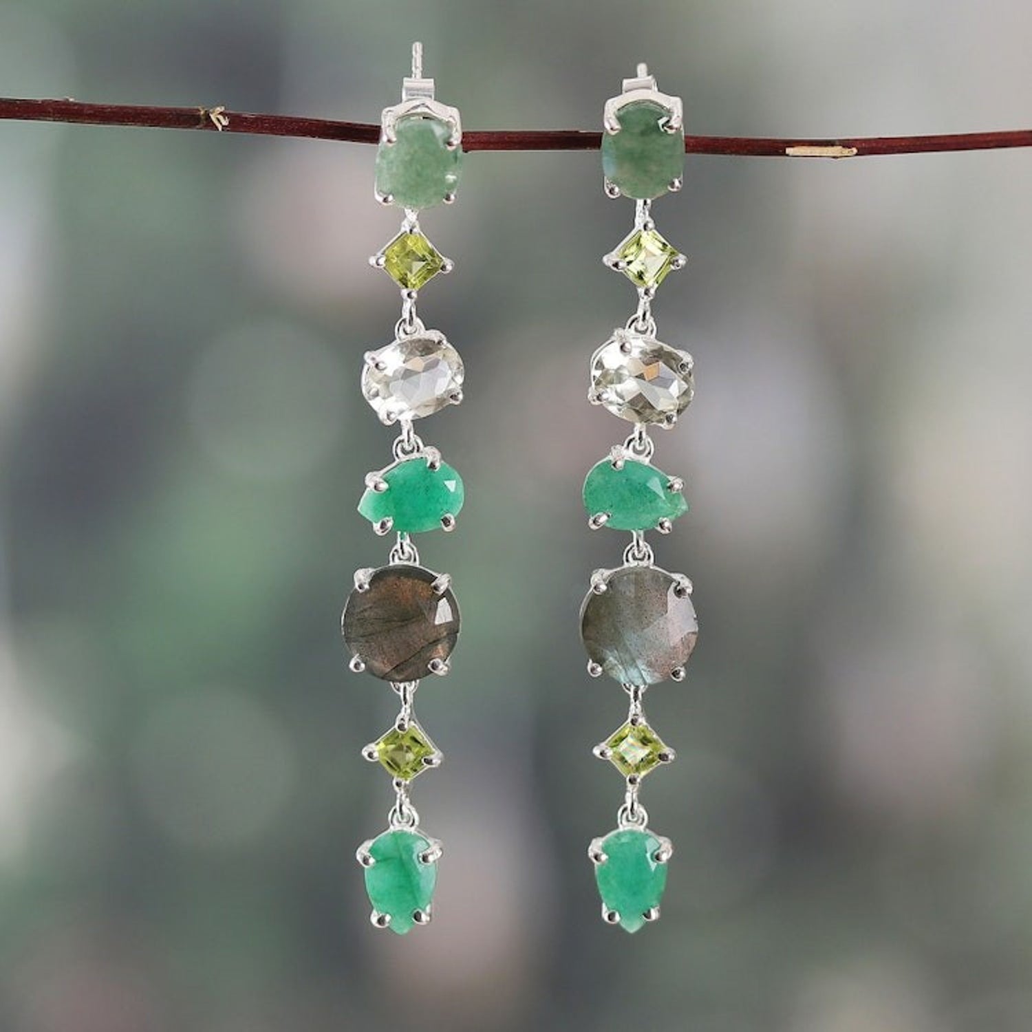 25-Carat Green Multi-Gemstone Dangle Earrings from India 'Enchanted Green'