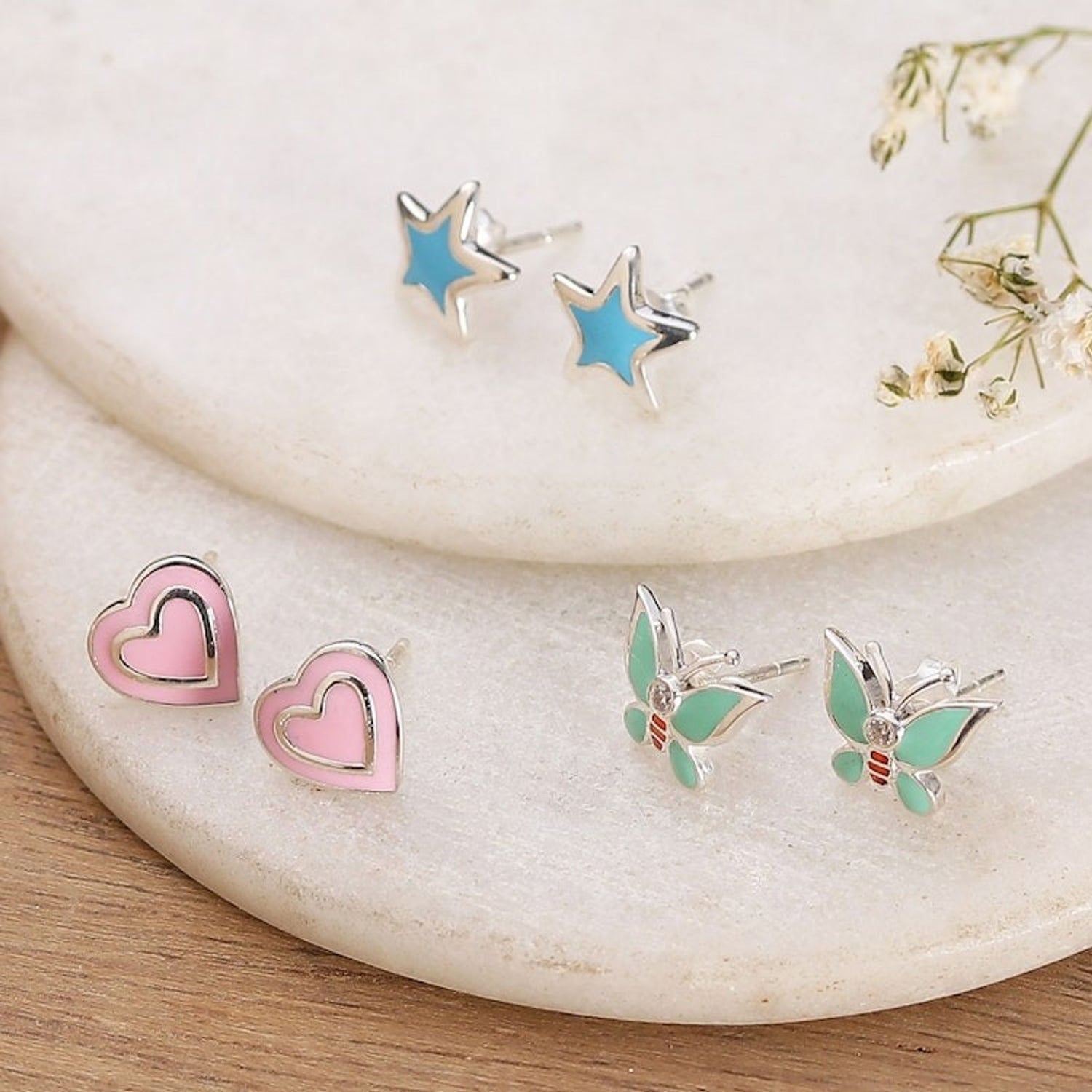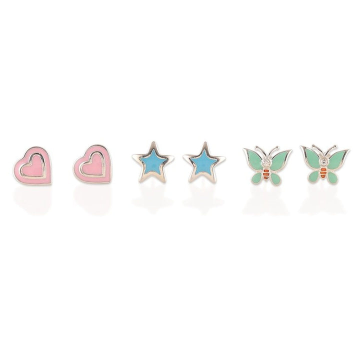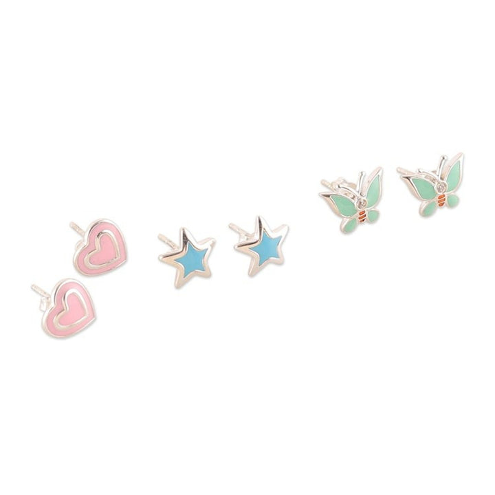 3-Pair Sterling Silver Stud Earrings Set in Pastel Hues 'Pastel Connections'