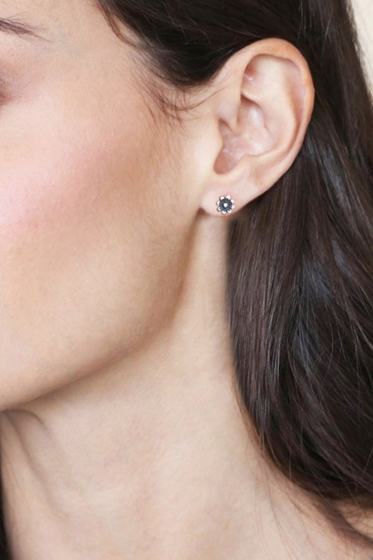 The 'Bucklers of Nature' stud earring set by Francisco Sánchez lets you face the day with an enchanting vibe. The set includes three stud earrings—butterflies, turtles, and spring blooms—all crafted from sterling silver. The oxidized and polished finishes enrich the image of each piece. This piece reflects the artist's bold, culturally inspired jewelry, often drawing from pre-Hispanic codices and Mexican folklore.