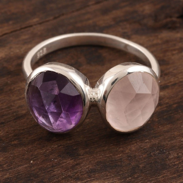 7-Carat Amethyst and Rose Quartz Cocktail Ring from India 'Delightful Fusion'
