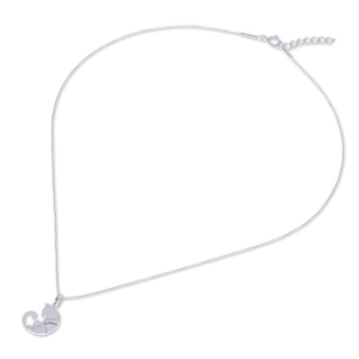 925 Silver Cat Pendant Necklace with Brushed-Satin Finish 'Lazy Cat'