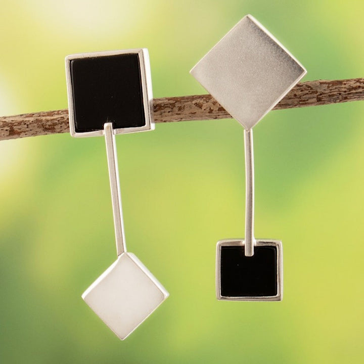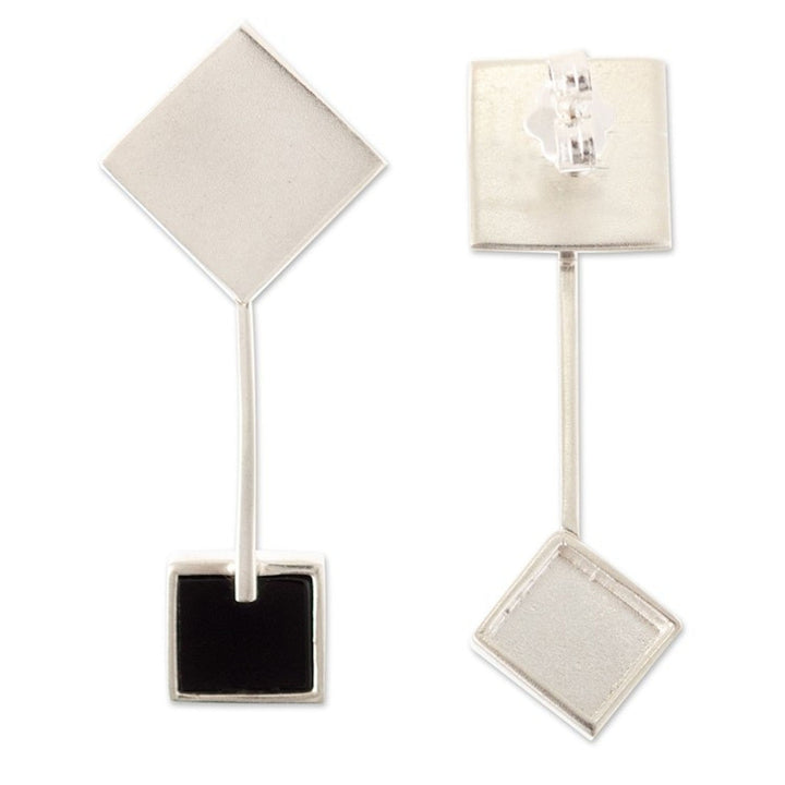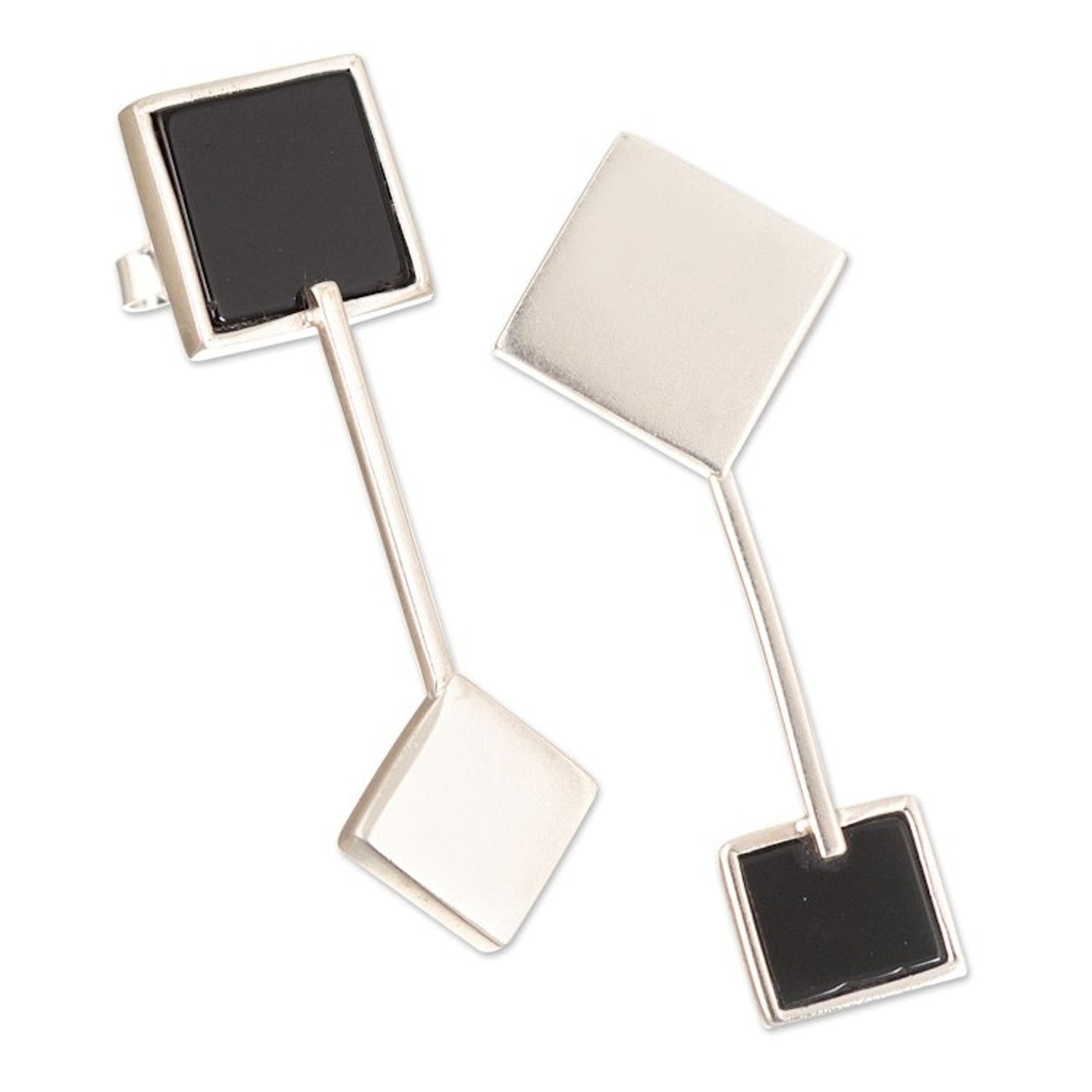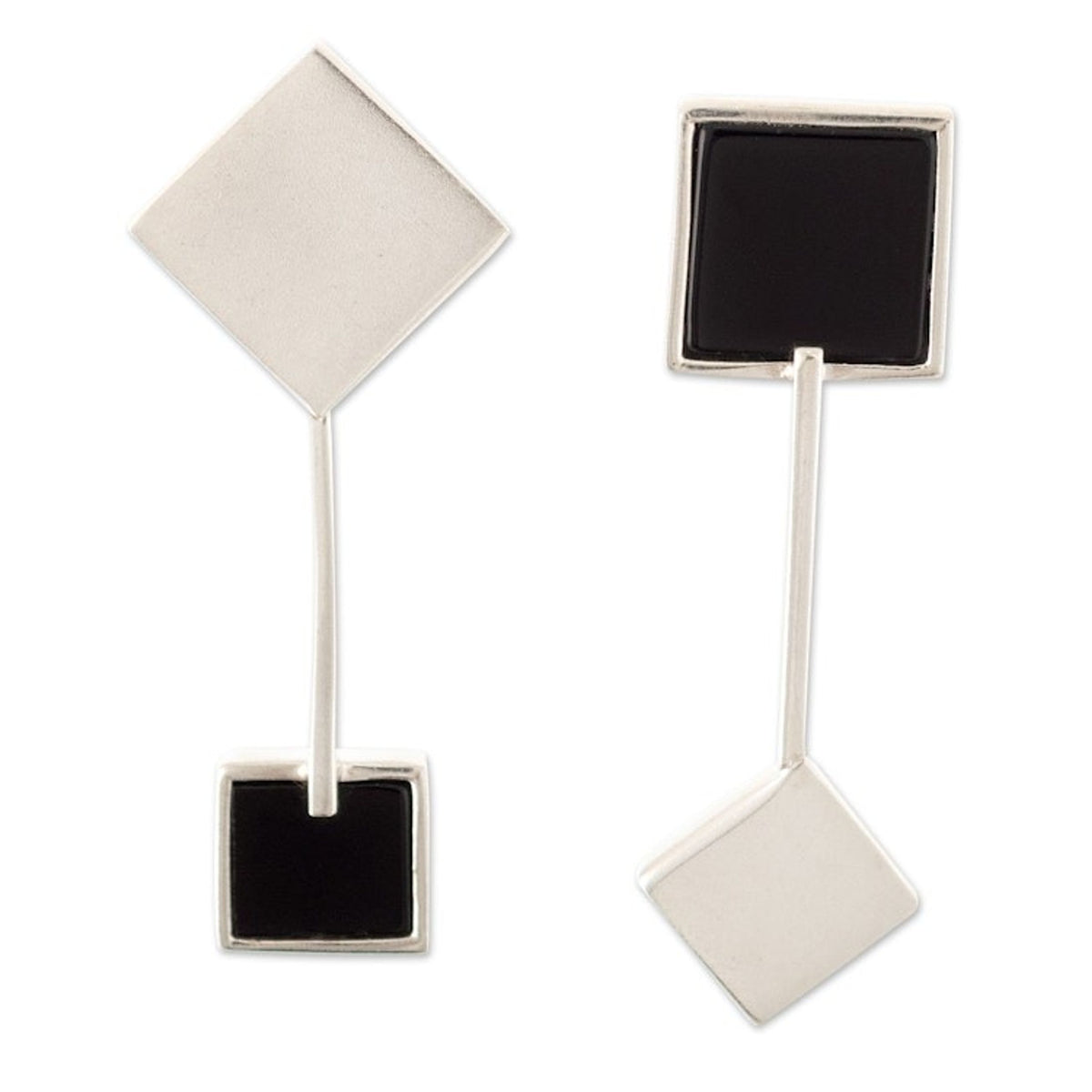 925 Sterling Silver and Onyx Drop Earrings from Peru 'Possibilities'