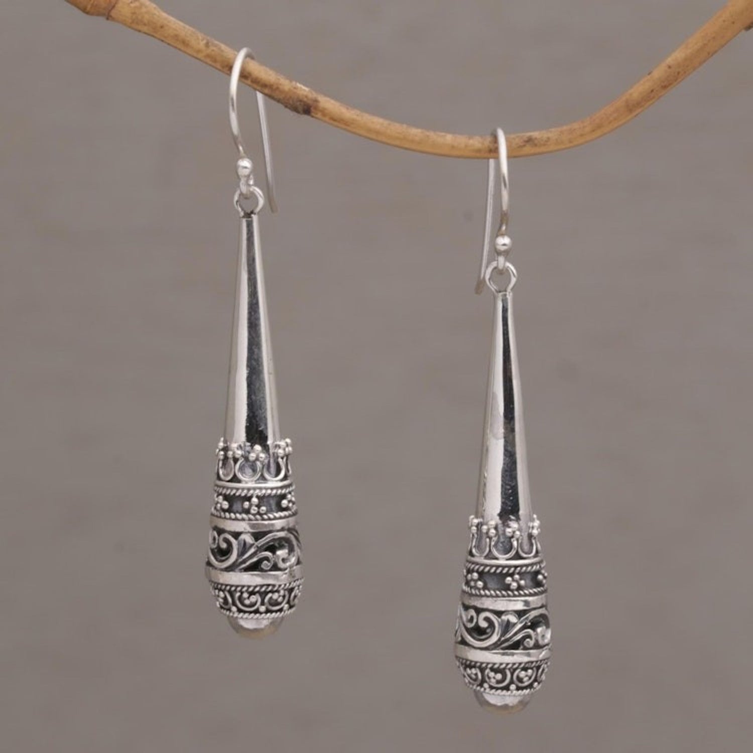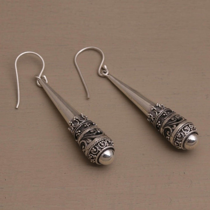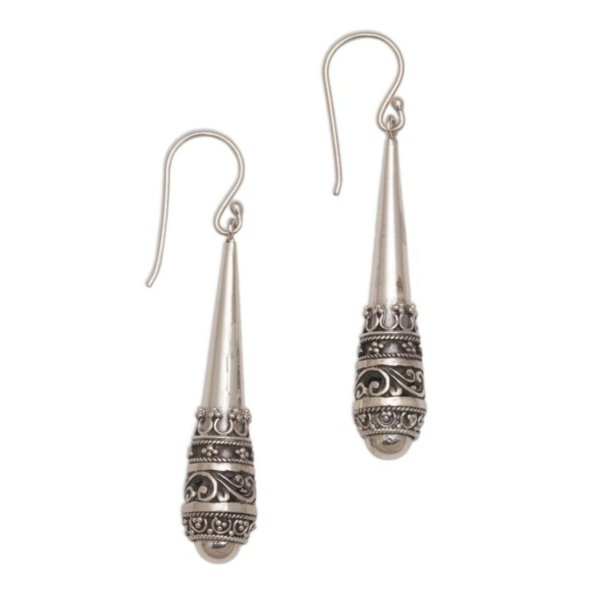 These 925 Sterling Silver Dangle Earrings with Hook Ear Wires 'Always Strong' by Independent Artisans are a stunning creation by Komang Wijayana. Inspired by his lifelong passion for jewelry and rooted in perseverance, these dangle earrings feature ornate details and a lustrous finish that create a truly eye-catching look. The design beautifully balances creativity and precision, showcasing the artisan’s dedication to quality and his desire to share beauty with the world. These earrings are a timeless accessory that adds a touch of intricate elegance to any ensemble.