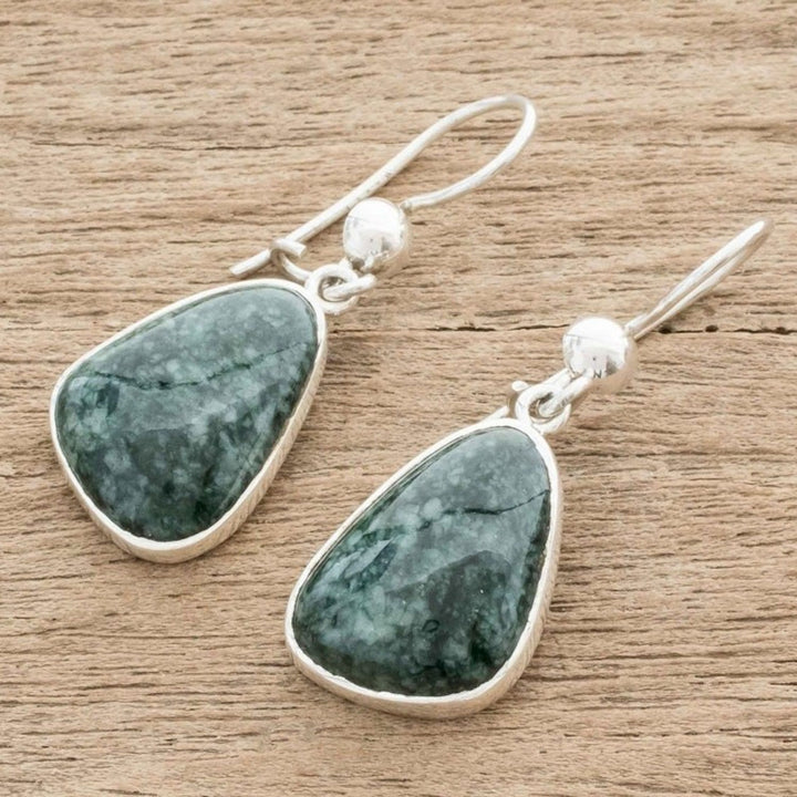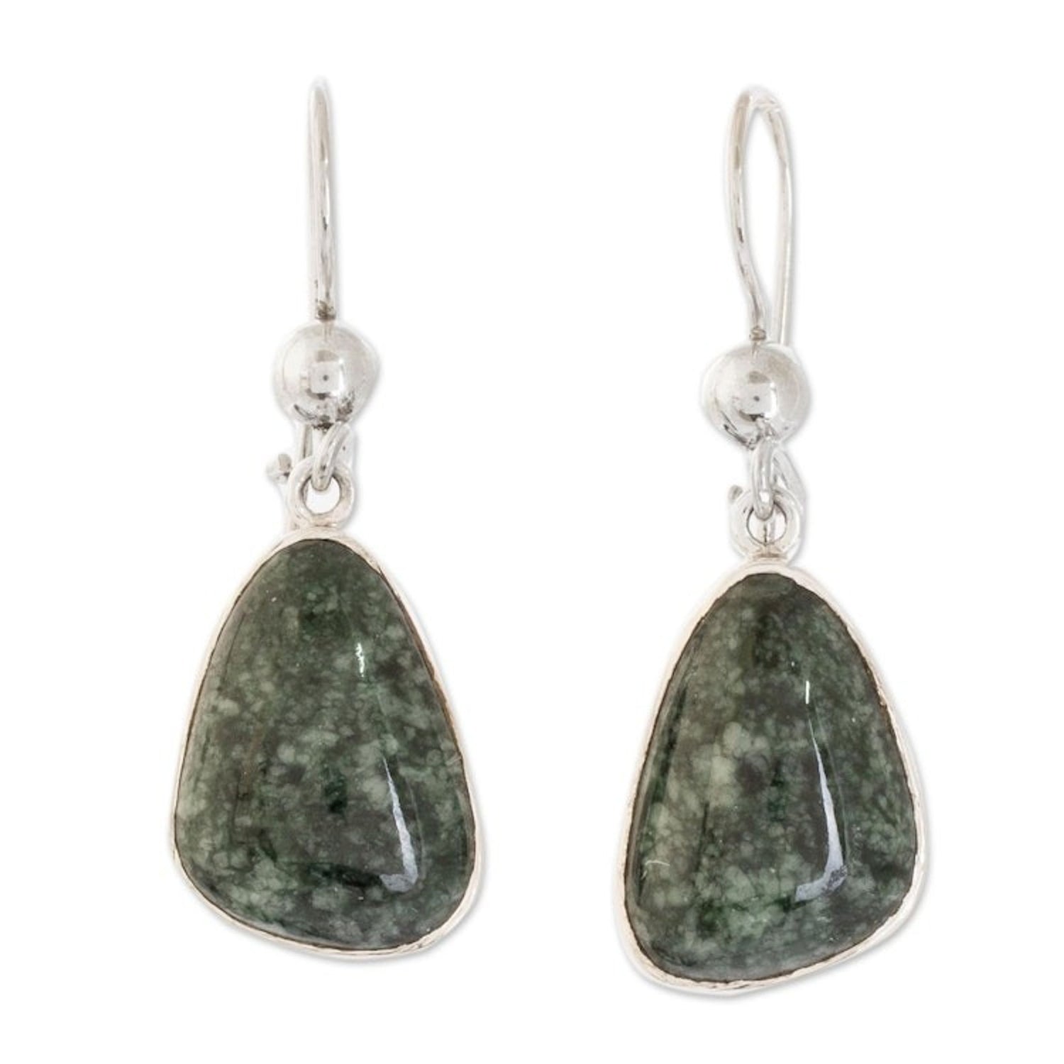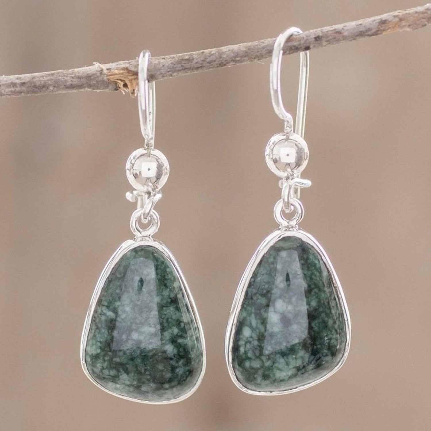925 Sterling Silver Dark Green Jade Earrings from Guatemala 'Asymmetry in Green'