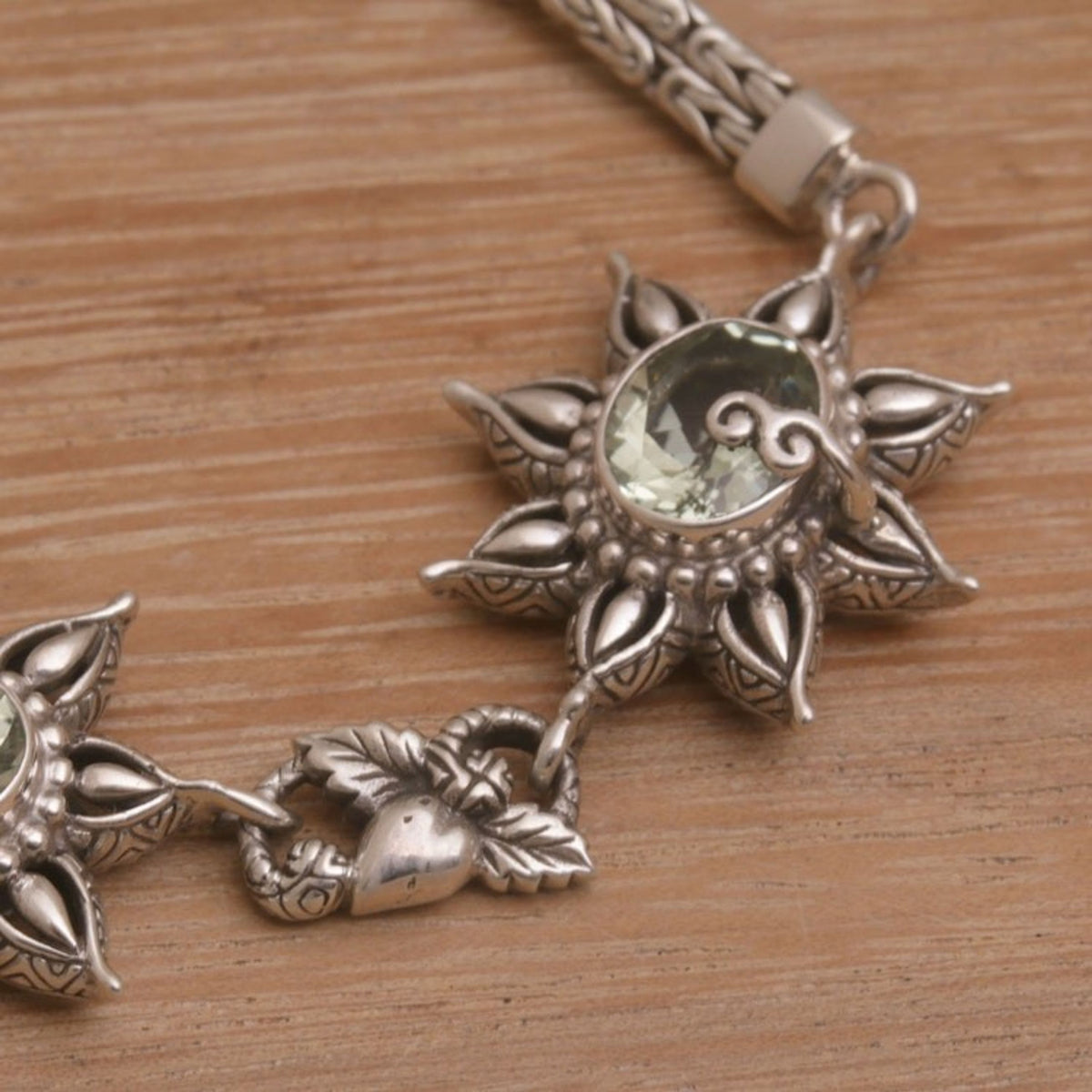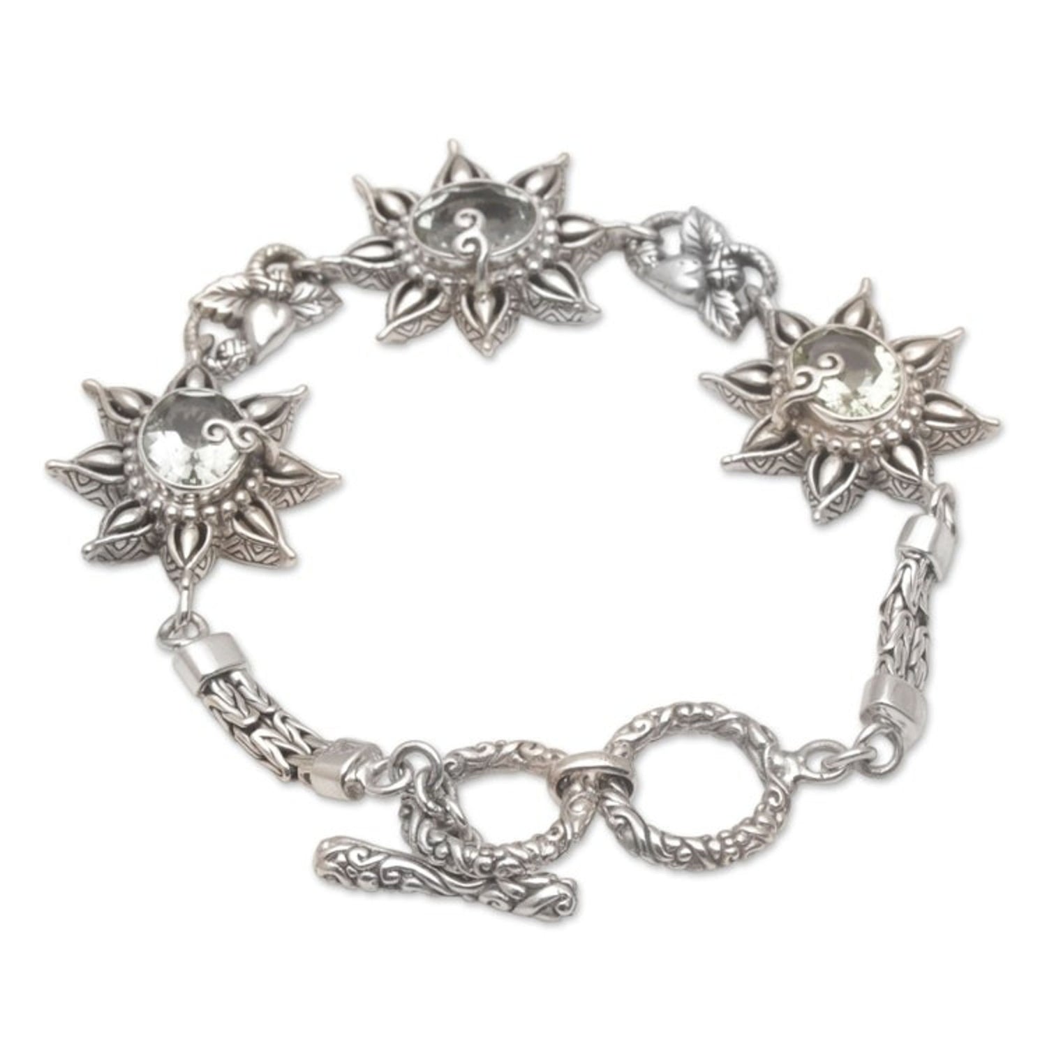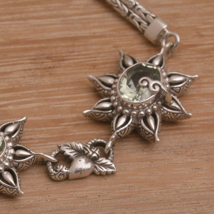 925 Sterling Silver Floral Green Prasiolite Link Bracelet 'Prasiolite Garden'