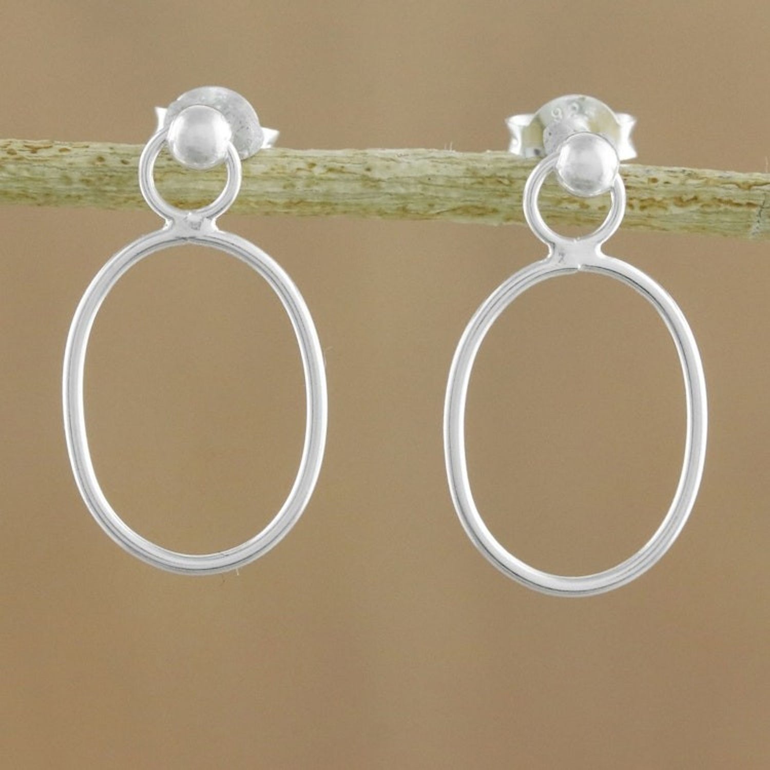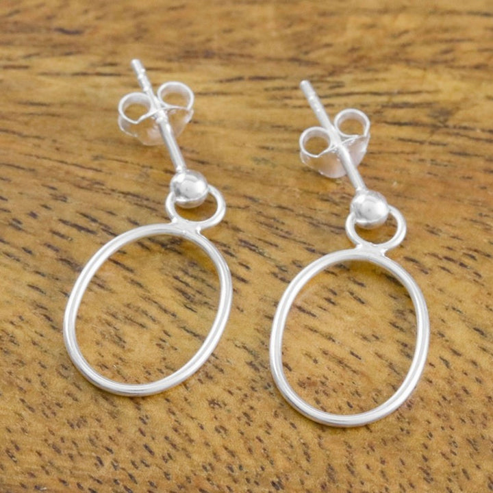 These 925 Sterling Silver Oval Frame Dangle Earrings with Posts 'Elegant Oval' by Independent Artisans are a hand-crafted piece by Lalana Thawiaphiradimani. Inspired by her work with Karen hill tribe silversmiths, these earrings feature a sleek, high-polish sterling silver oval frame. The simple yet elegant design makes them an eye-catching accessory for any occasion, perfect for daily wear or a special night out. They are a testament to her dedication to the craft and her mission to create sustainable livelihoods for her collaborators.