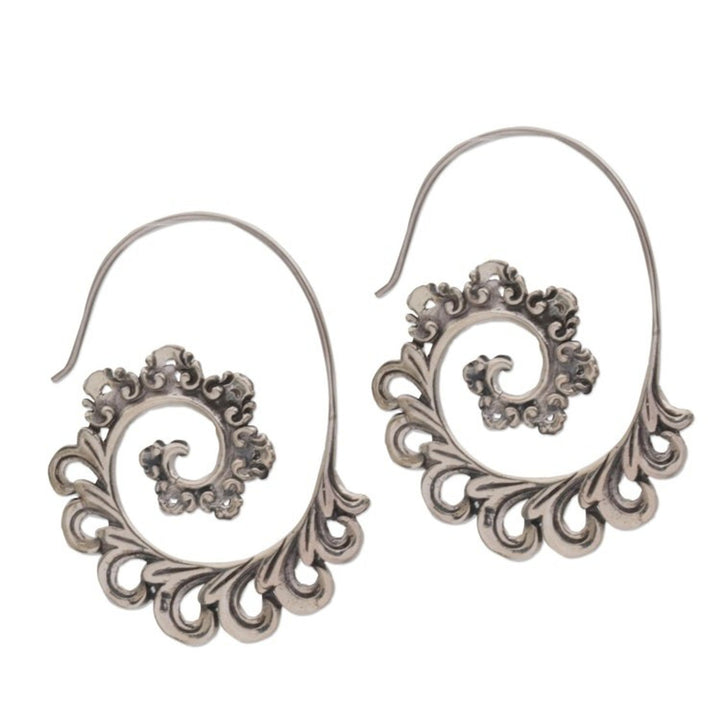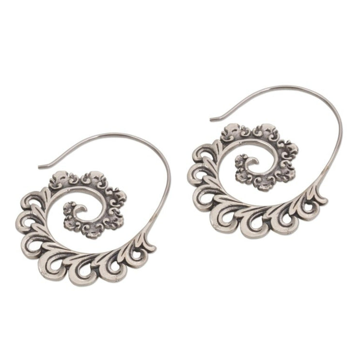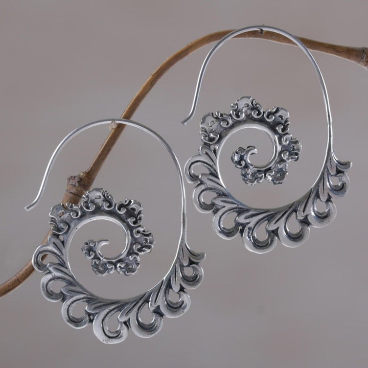 These 925 Sterling Silver Paisley Half-Hoop Earrings from Bali 'Paisley Ferns' by Independent Artisans are an original design by Nyoman Rupadana. Inspired by Balinese motifs and contemporary fashion, these half-hoop earrings feature spirals of intricate paisley motifs that curl gracefully below the ears. The sterling silver is given a striking combination of contrasting finishes for a unique and unforgettable look. This piece beautifully embodies Nyoman's resilience and dedication to his craft, reflecting his ability to blend traditional artistry with a modern aesthetic. They are a perfect accessory for those who appreciate both heritage and style.
