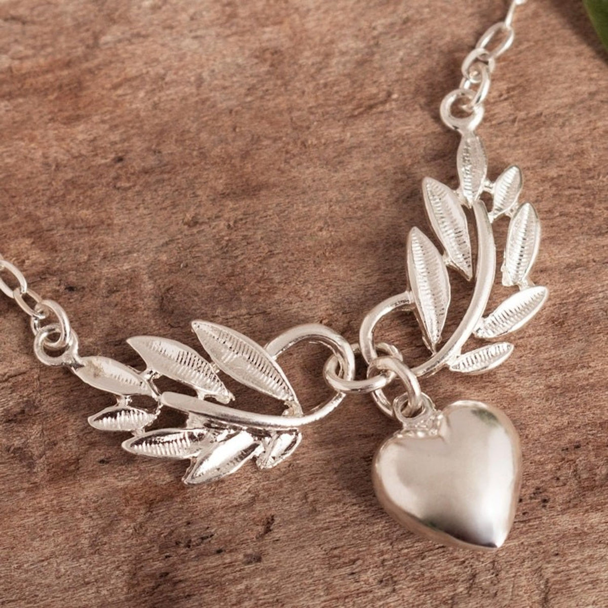 This 925 Sterling Silver Pendant Necklace With Heart and Branches 'Heart Victorious' by Independent Artisans is an exquisite piece by Maria del Carmen Vargas. Inspired by life, nature, and her own faith, Maria has created a simple yet powerful design. A high-polish sterling silver heart is elegantly framed by two sets of leaves, which are also reminiscent of delicate wings. The necklace is a testament to her personal journey and her belief that inspiration is all around us. This piece is a beautiful blend of meticulous craftsmanship and timeless symbolism, offering a tangible expression of love and the victorious spirit.
