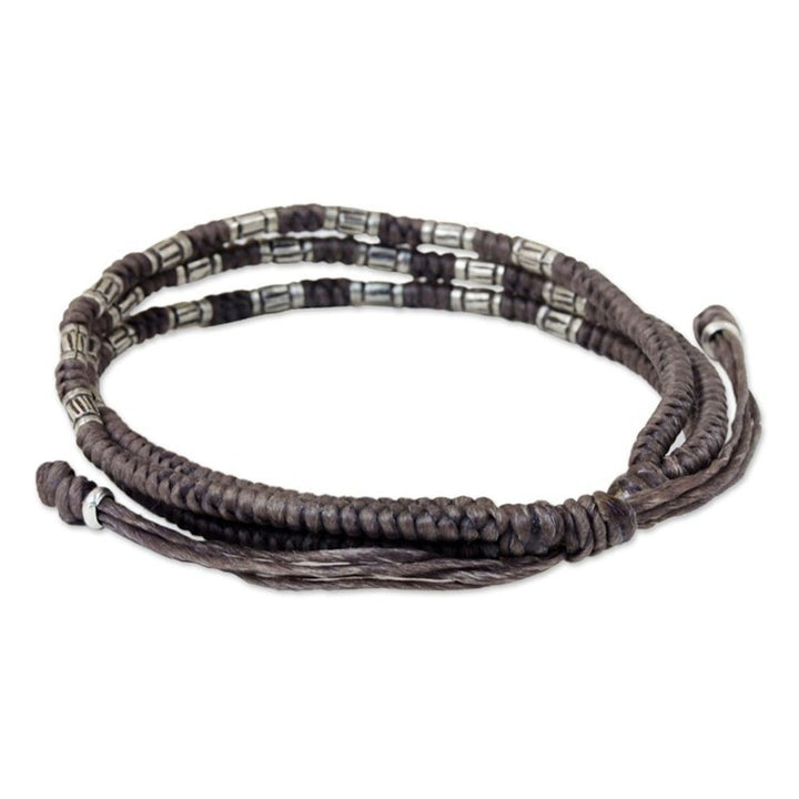 This 950 Silver Accent Wristband Braided Bracelet from Thailand 'Forest Thicket in Taupe' by Independent Artisans is a stylish and original piece by Napapat. She has designed this bracelet using the intricate braiding techniques of the Yao women. The bracelet features three braided ropes decorated with oxidized 950 silver beads, creating a look reminiscent of a forest thicket. The sliding knot closure makes it easy to adjust for a perfect fit. This piece is a beautiful blend of traditional artistry and modern design, reflecting patience, imagination, and a deep appreciation for Thailand’s diverse cultural heritage.