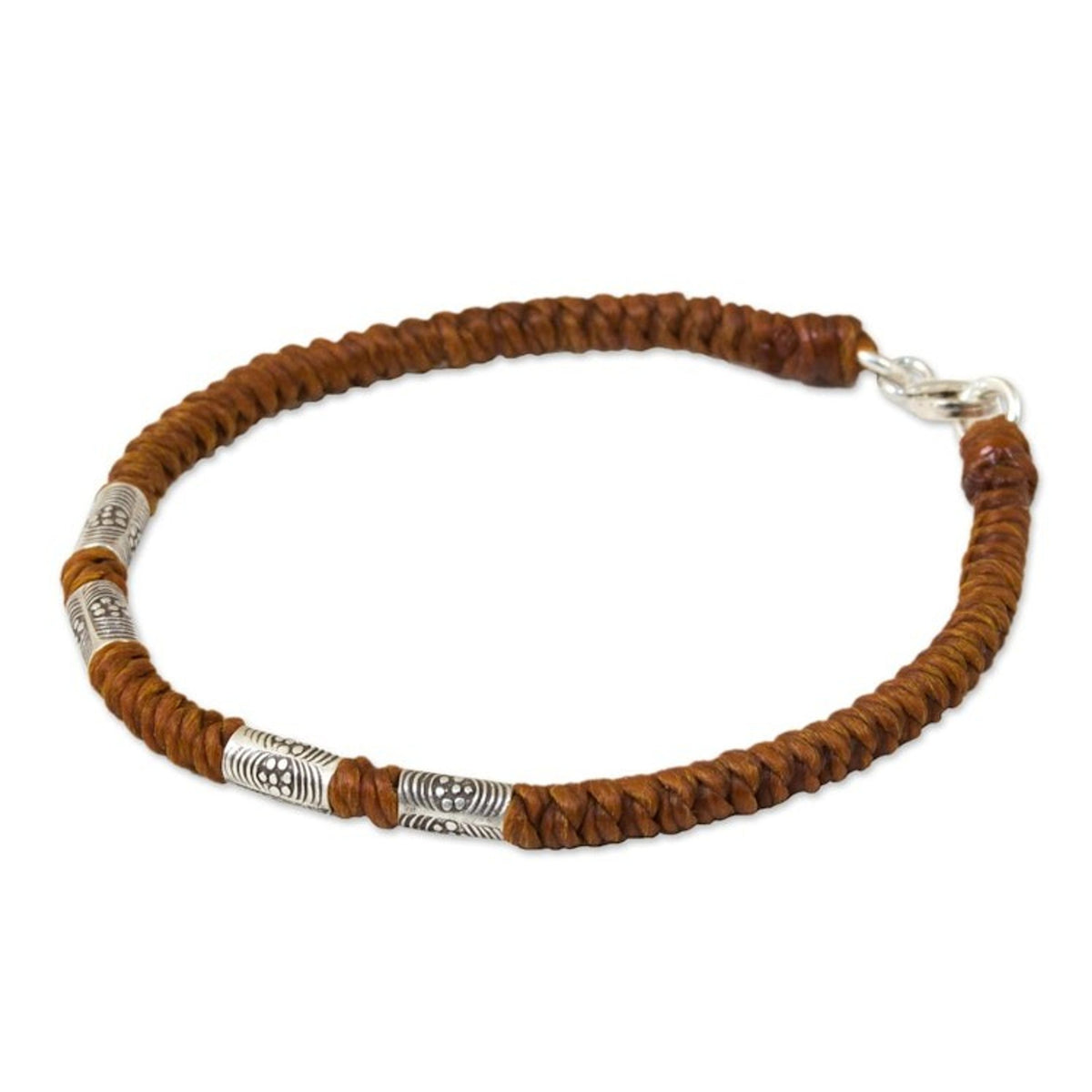 950 Silver Accent Wristband Braided Bracelet from Thailand 'Simply Happy in Rust'