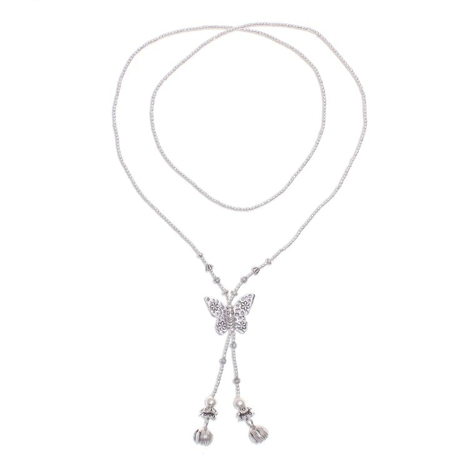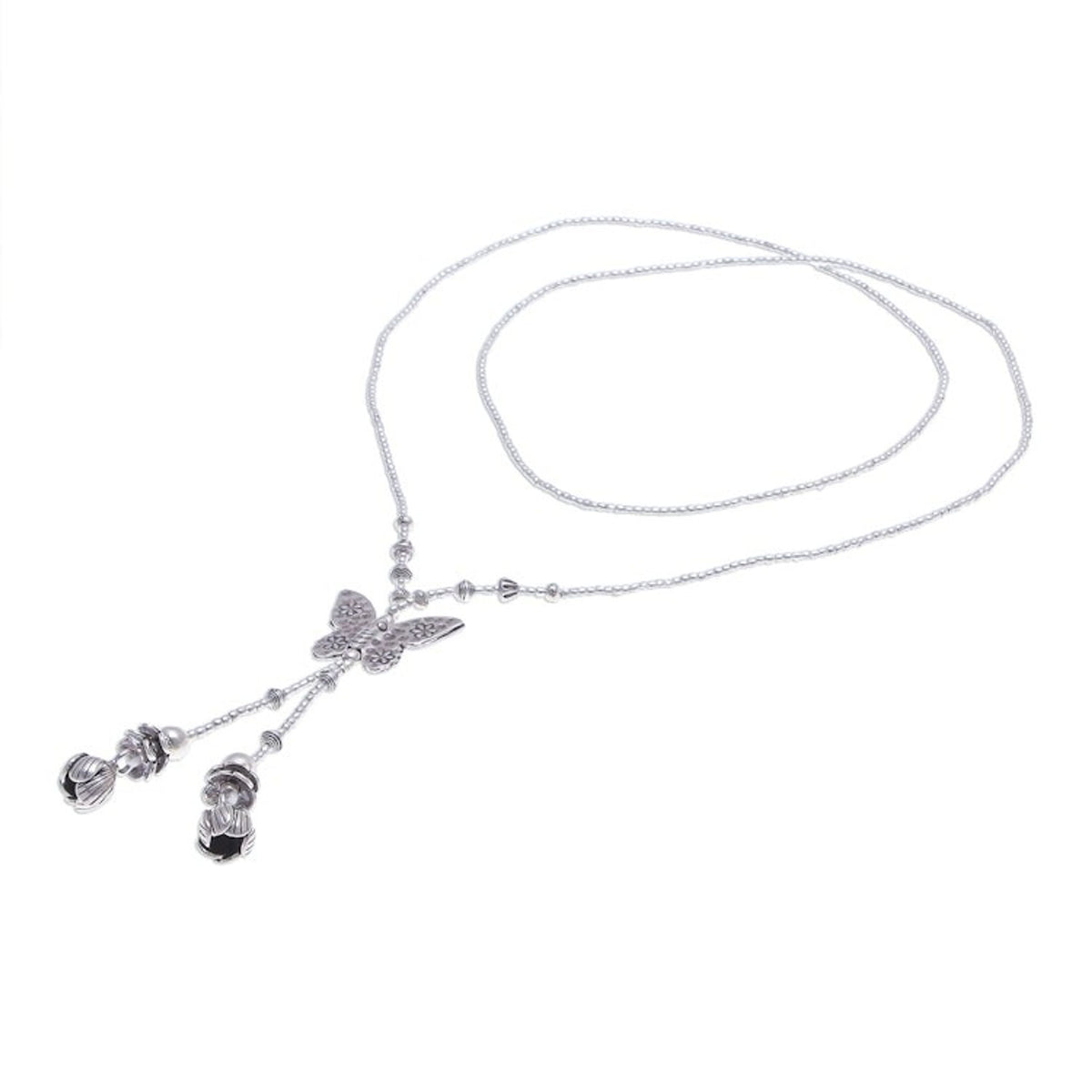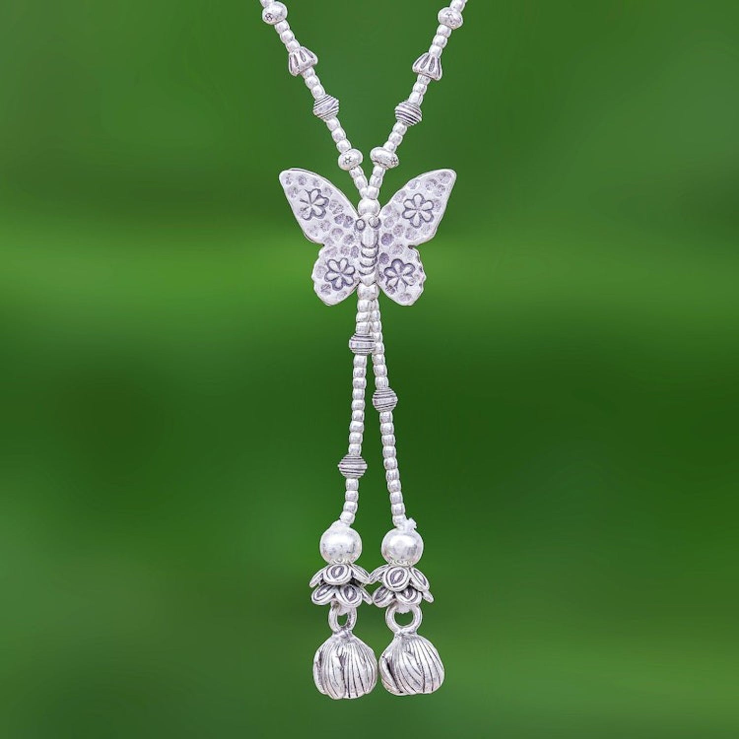 950 Silver Butterfly Pendant Lariat Necklace 'Butterfly Passion'