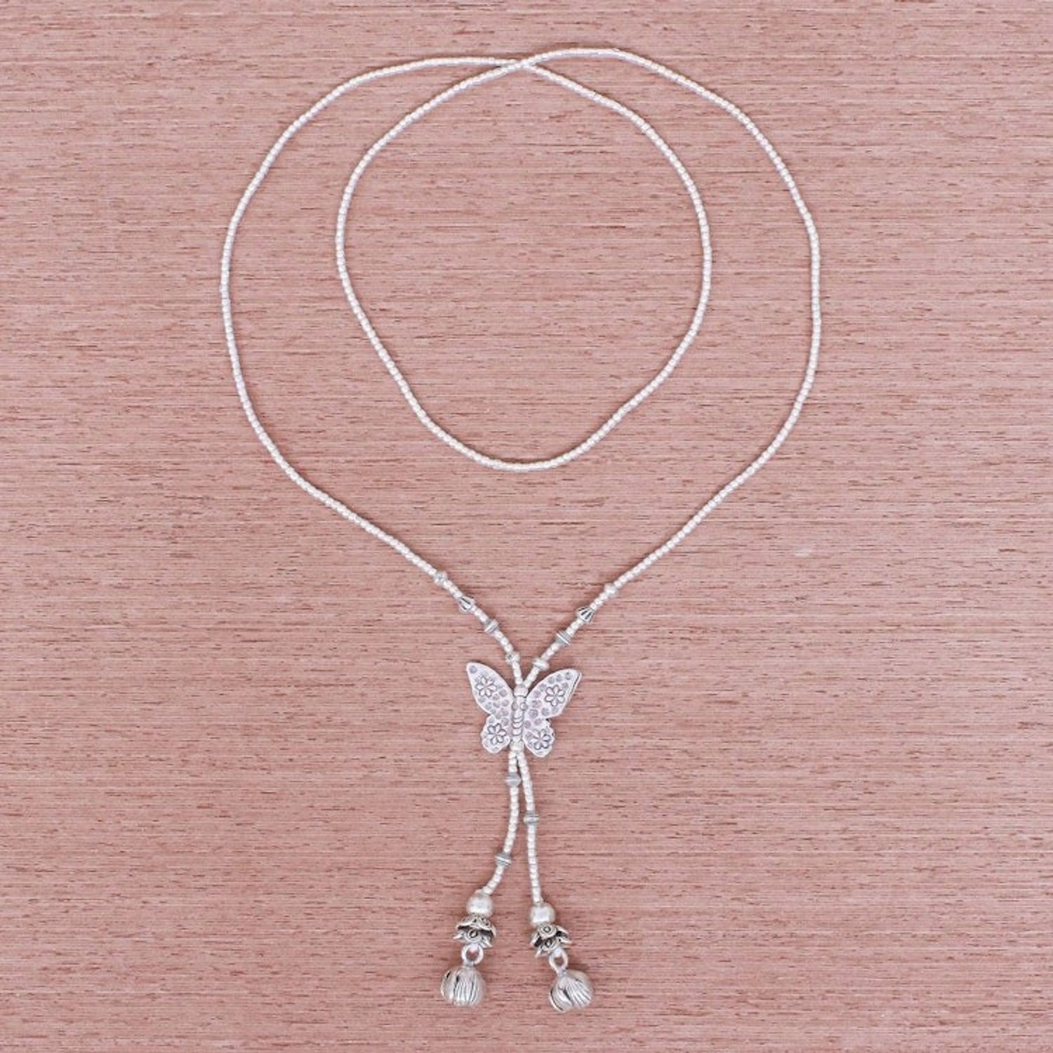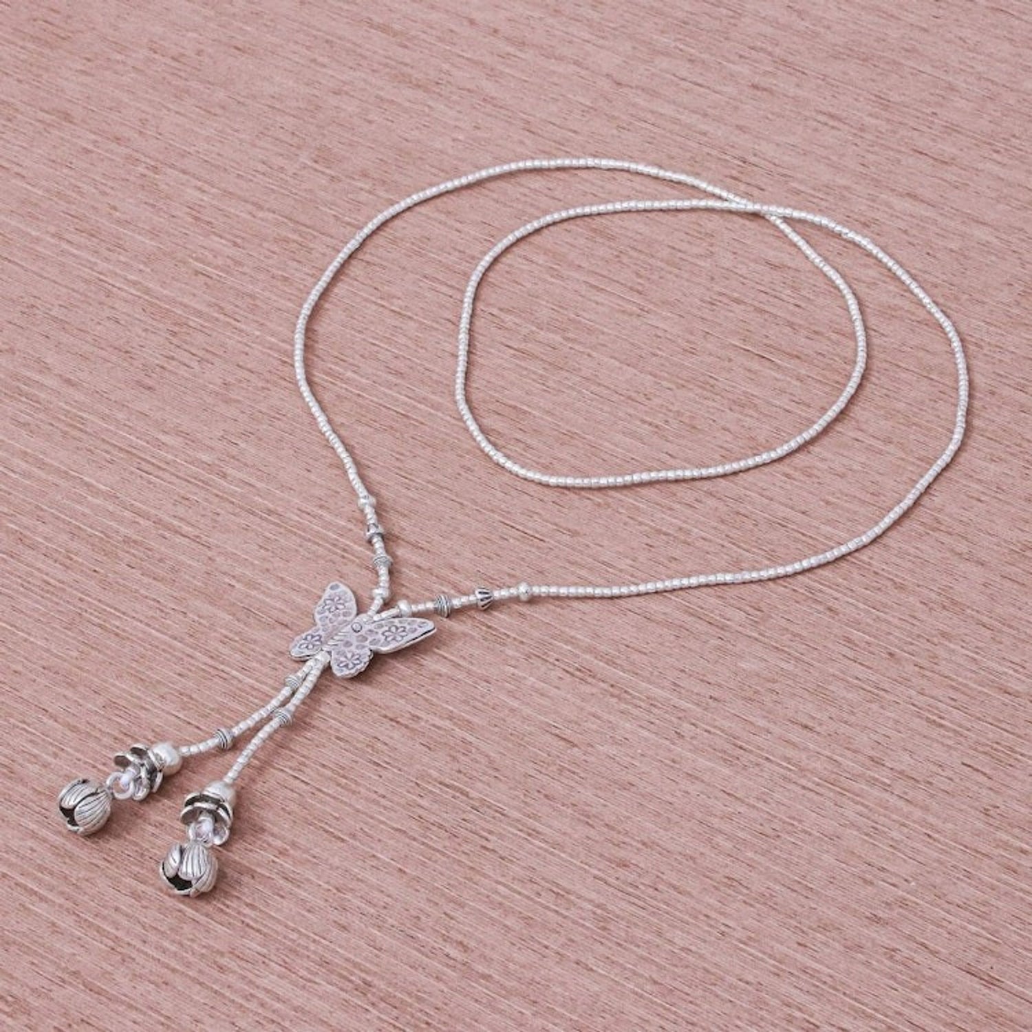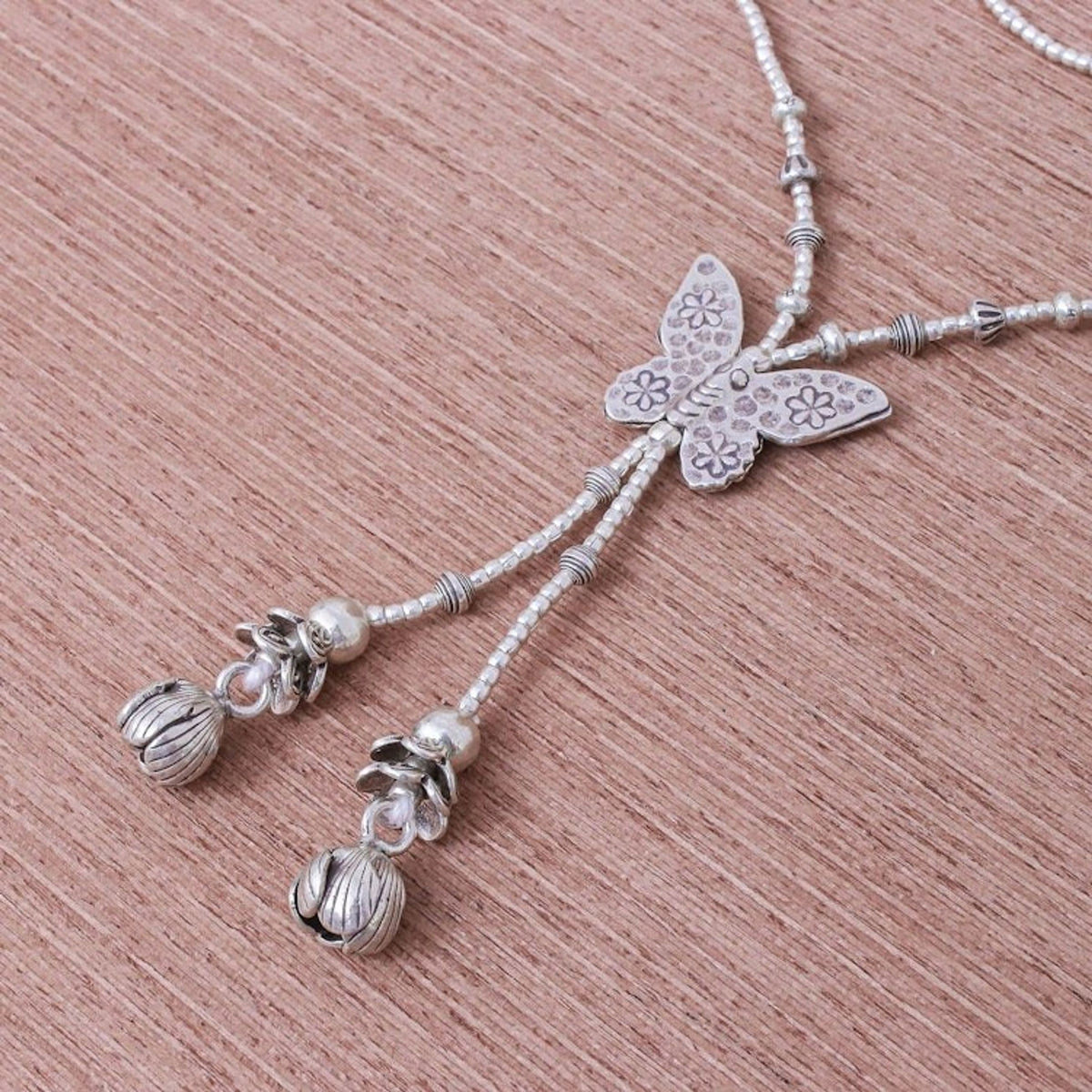 950 Silver Butterfly Pendant Lariat Necklace 'Butterfly Passion'