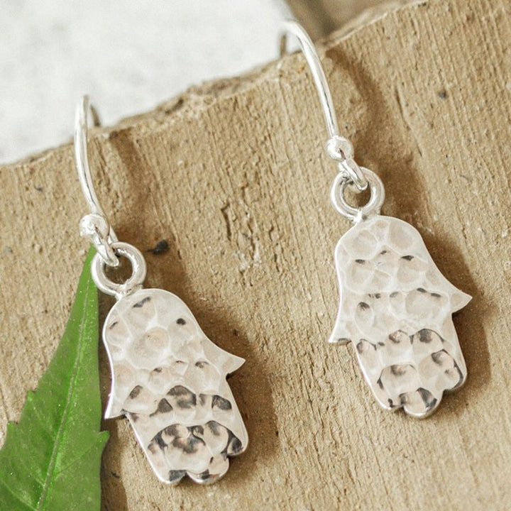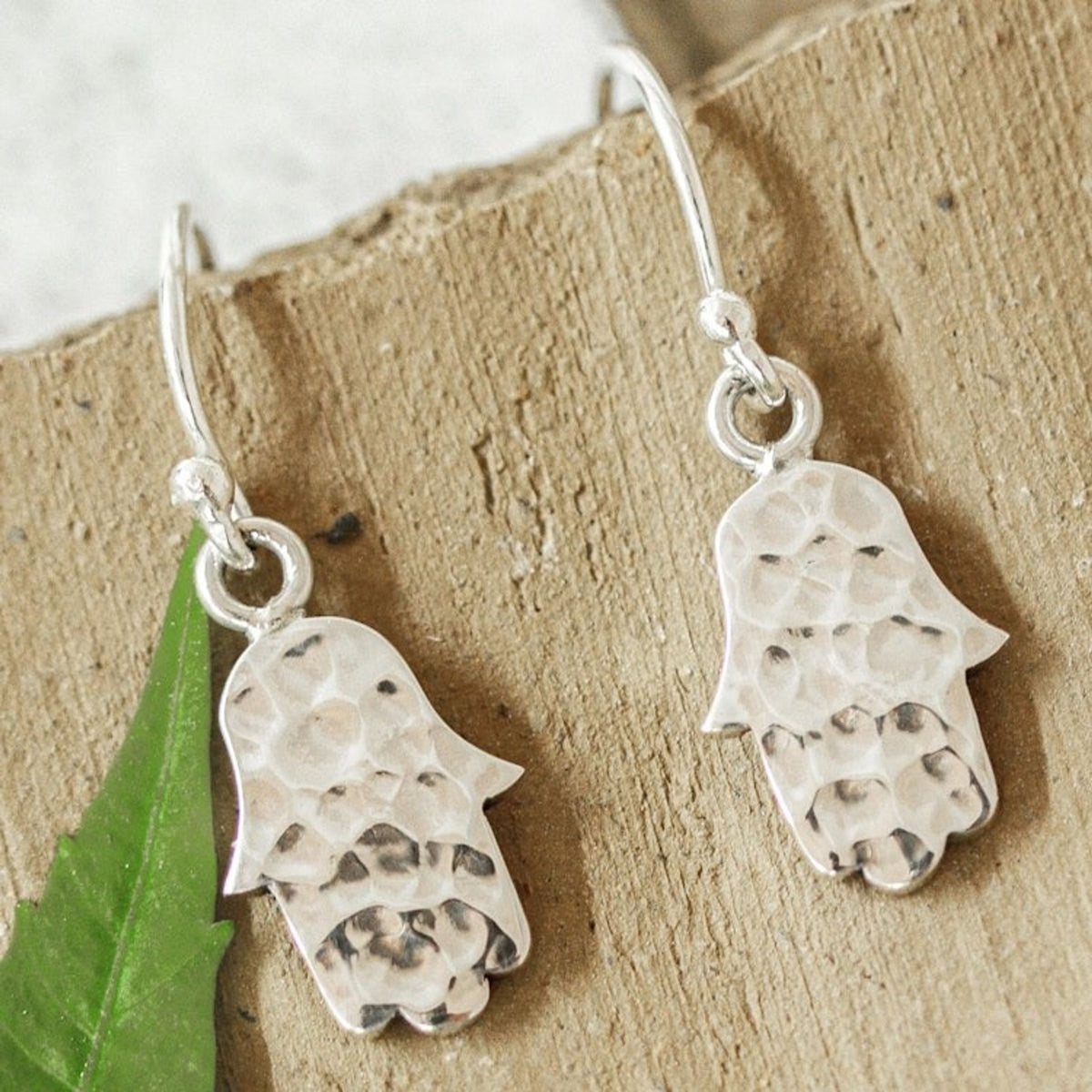 950 Silver Hamsa Hand Dangle Earrings from Mexico 'Magic Hands'
