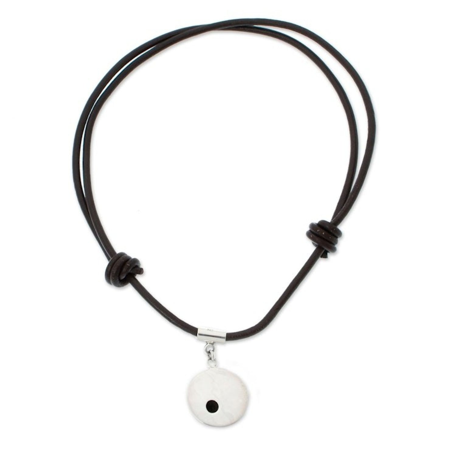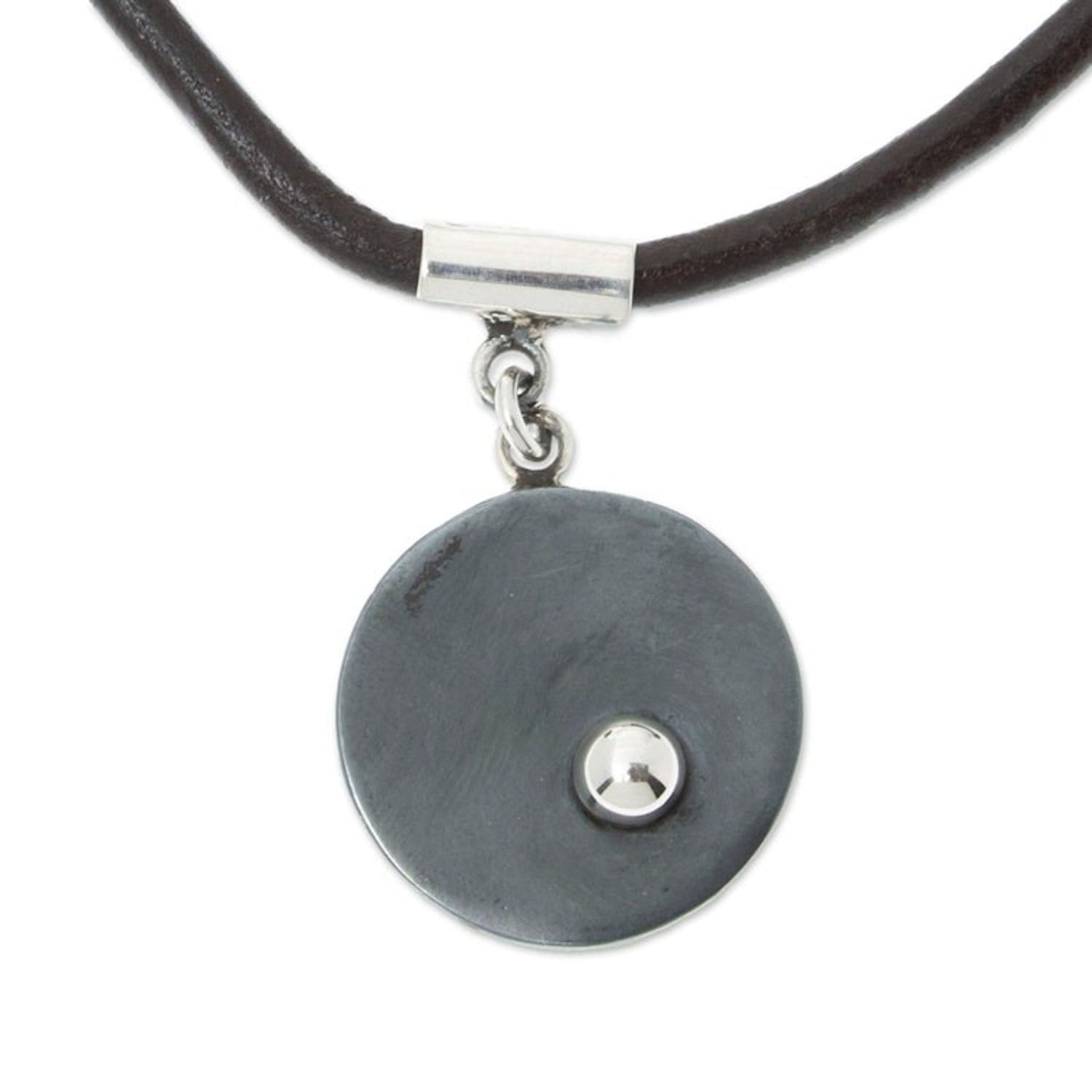 950 Silver Pendant on Leather Adjustable Cord from Mexico 'Cosmos'