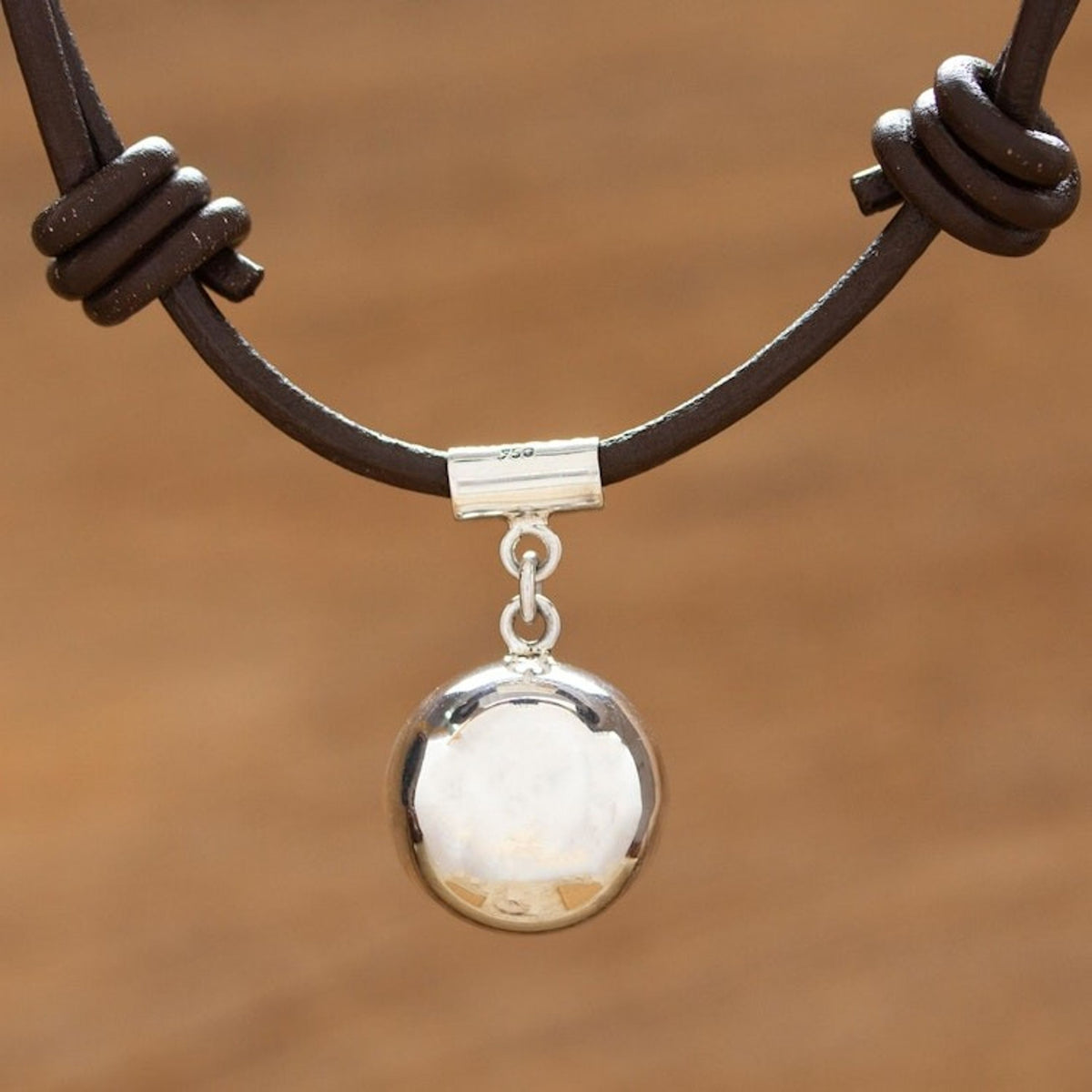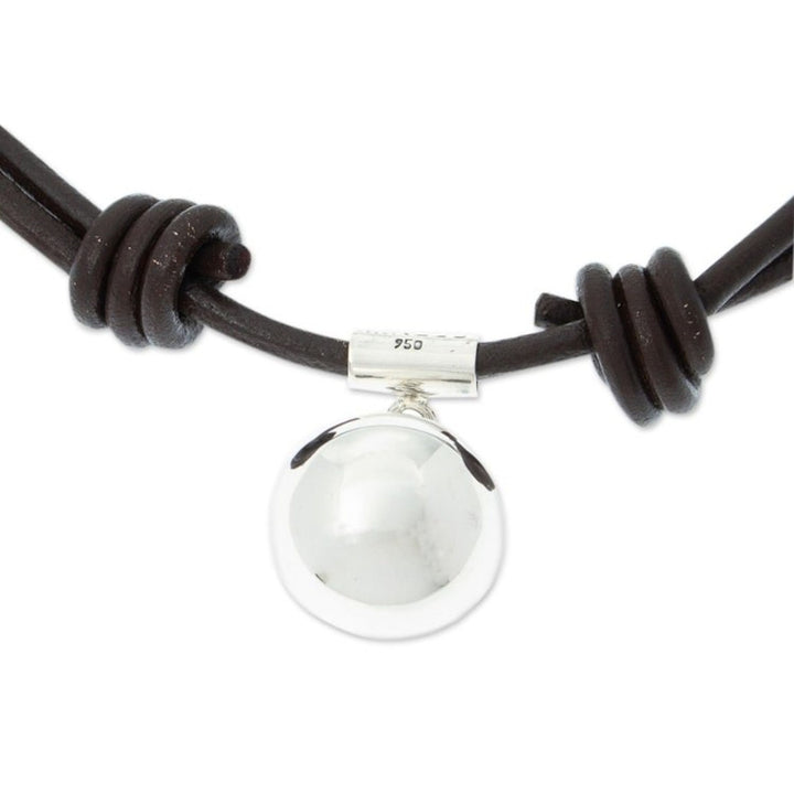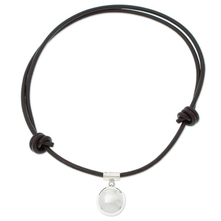 950 Silver Pendant on Leather Adjustable Cord from Mexico 'Metztli'