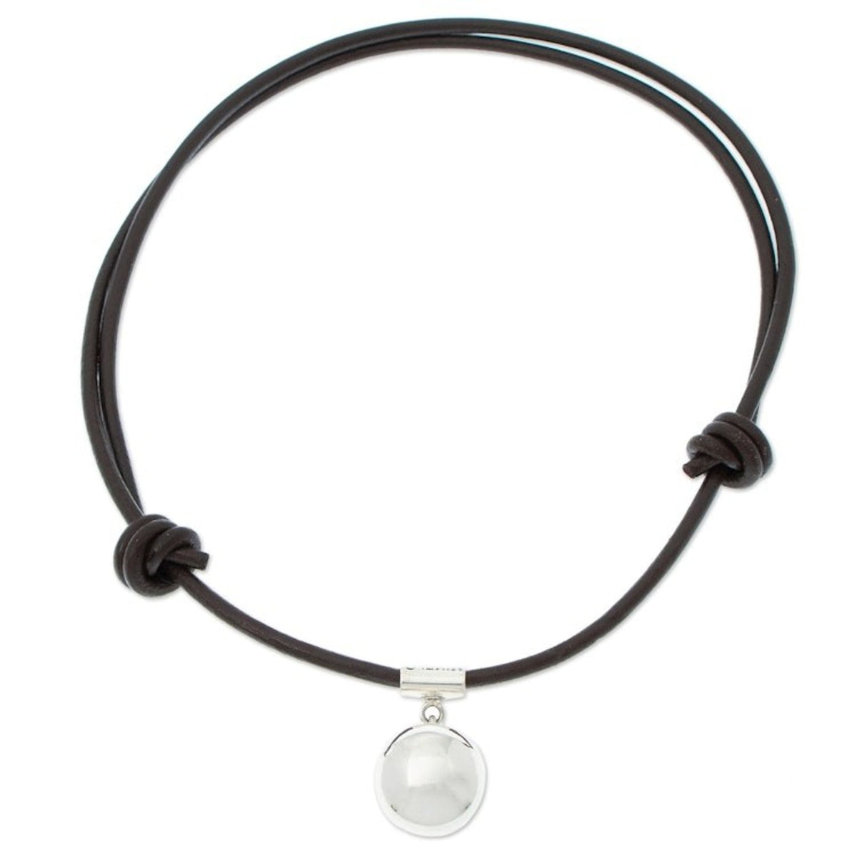 Handcrafted in Mexico, this necklace is made from high-polish 950 silver and leather. It features an adjustable length from 17.8 to 29.5 inches. The pendant measures 1.5 inches L x 0.9 inches W.