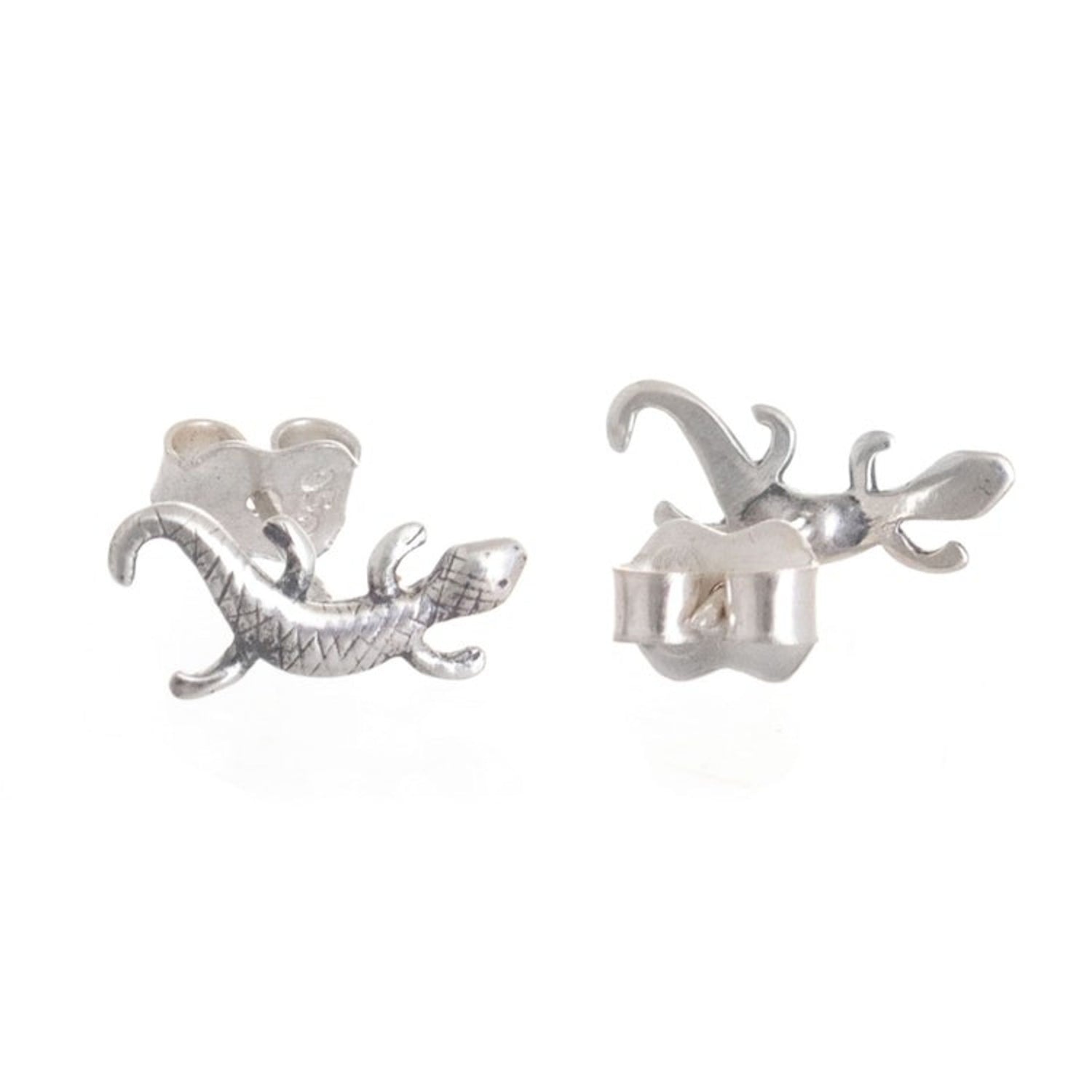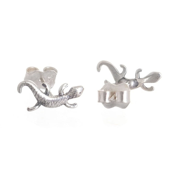 950 Silver Stud Earrings from Peru 'Happy Lizard'