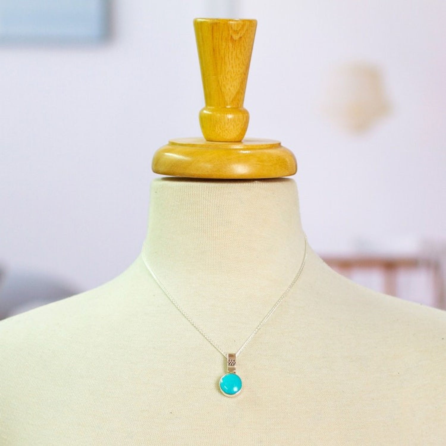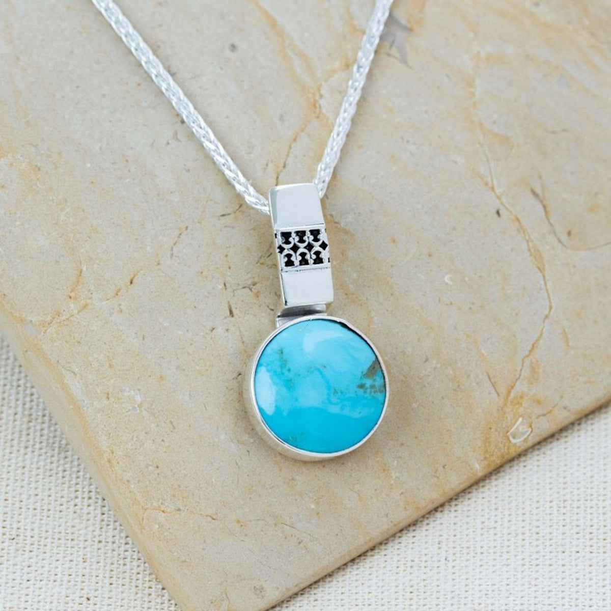 950 Silver Turquoise Pendant Necklace From Mexico 'Eastern Skies'