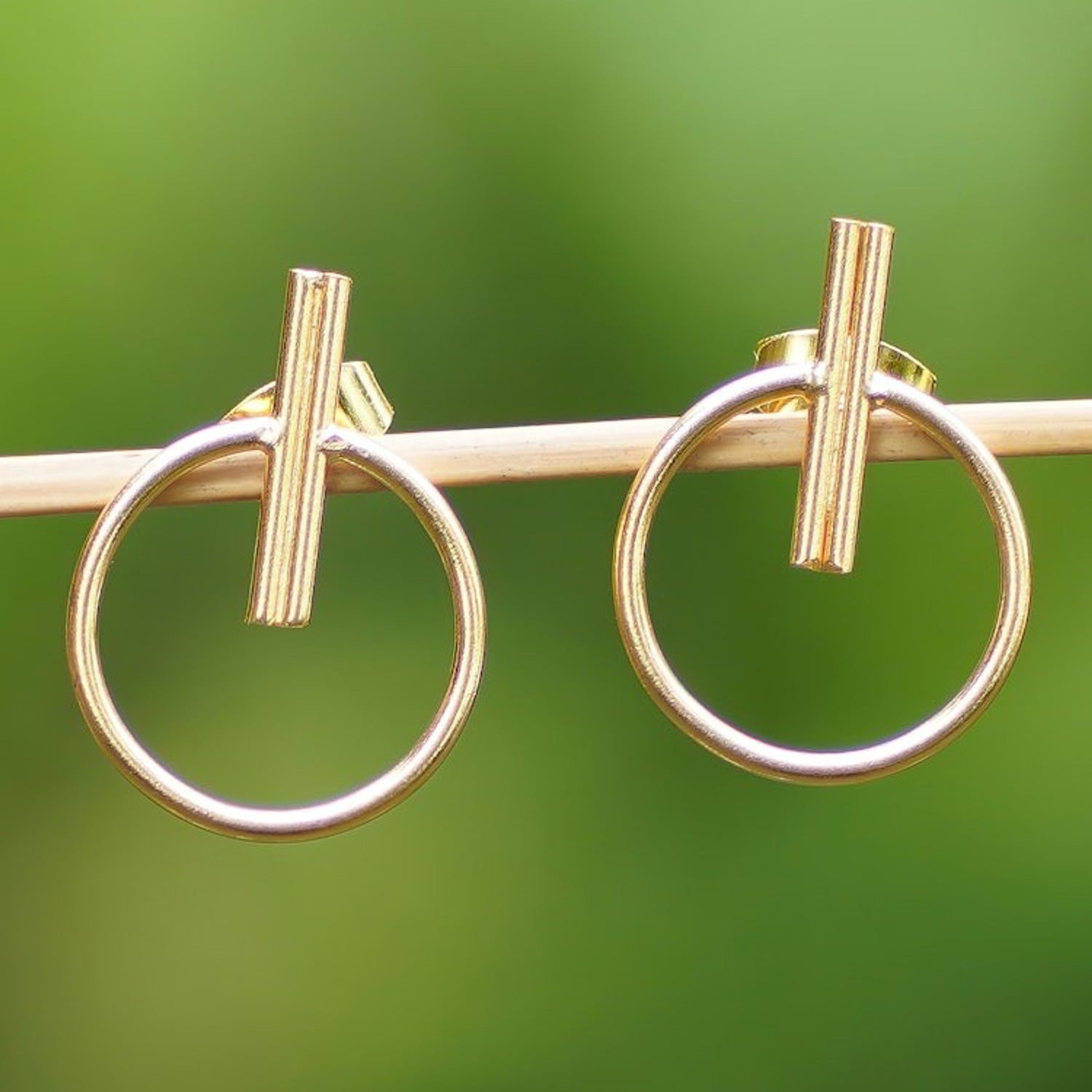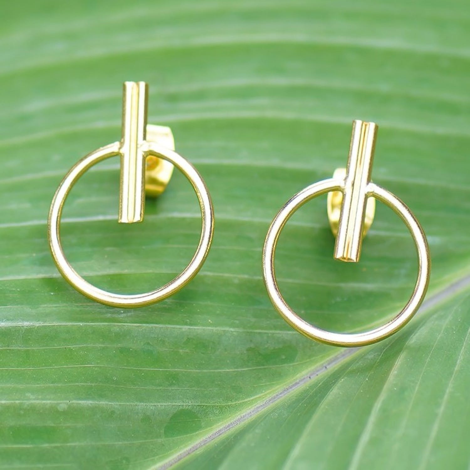 Handcrafted in Indonesia, these earrings are made from high-polish 18k gold-plated brass. They measure 0.8 inches L x 0.6 inches W and secure with post clasps.