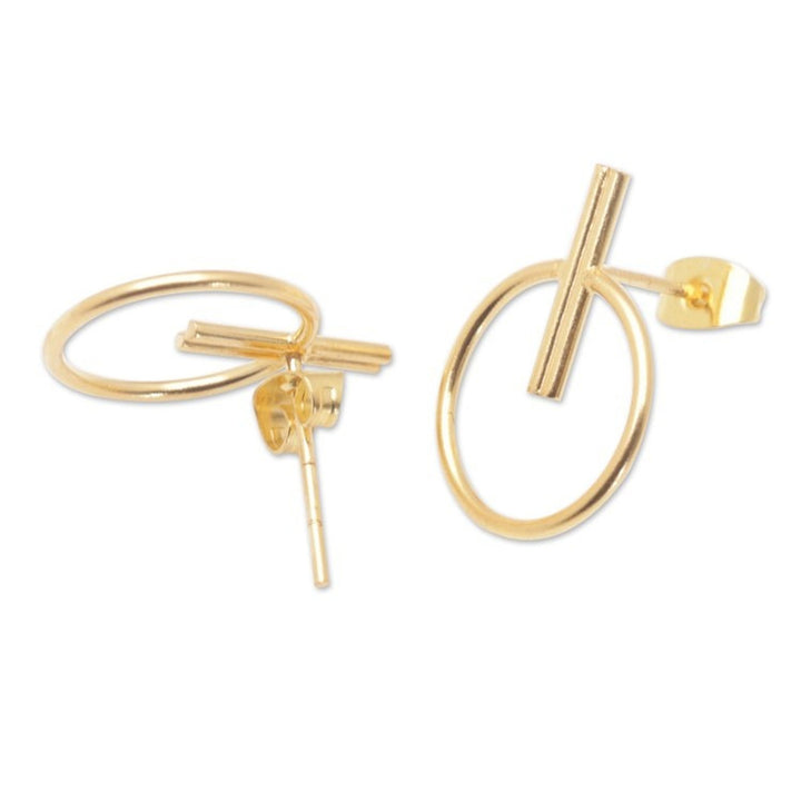 These Abstract 18k Gold-Plated Brass Drop Earrings from Bali 'Ethereal Sweetness' are a perfect accessory for a modern fashion statement, crafted by Balinese artisan Suana Yasa. Inspired by the warmth of brass, these abstract formations are plated with 18k gold and given a high-polish finish that allows them to dazzle with sophistication. The design brings to mind the sweet memories of delicious candy lollipops, making them a whimsical yet elegant accessory. This piece embodies his dedication to his craft and his goal of reaching a global audience with his refined and beautiful creations.