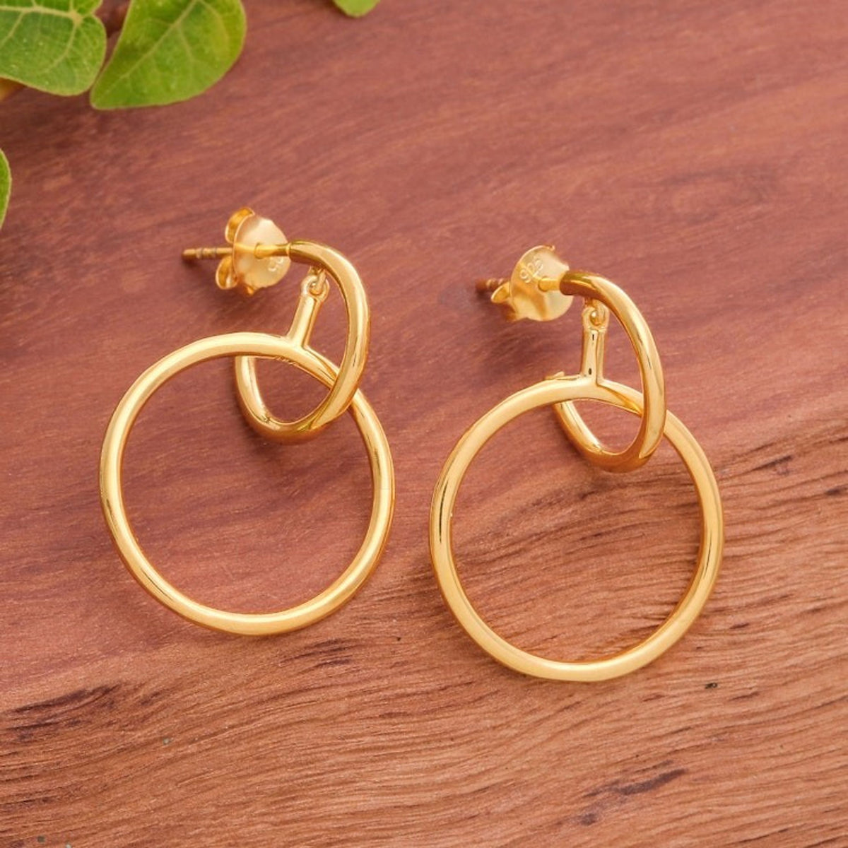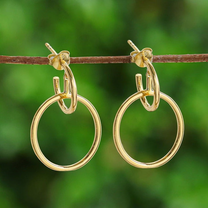 Abstract 18k Gold-Plated Dangle Earrings Crafted in Thailand 'Victorious Life'