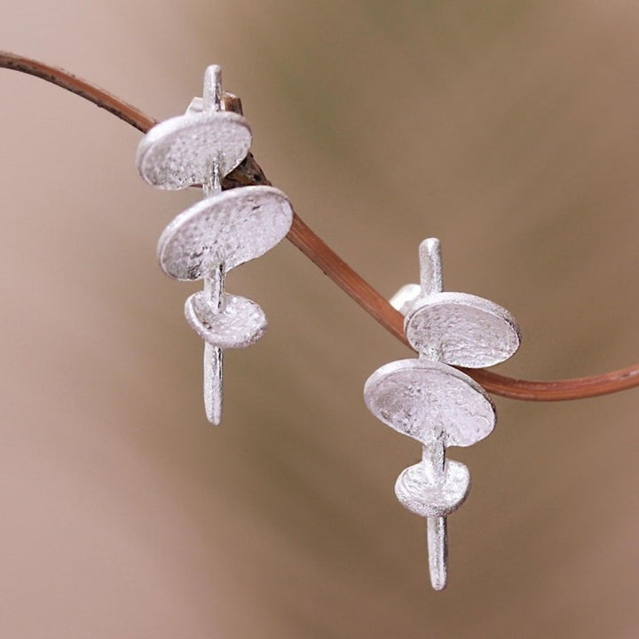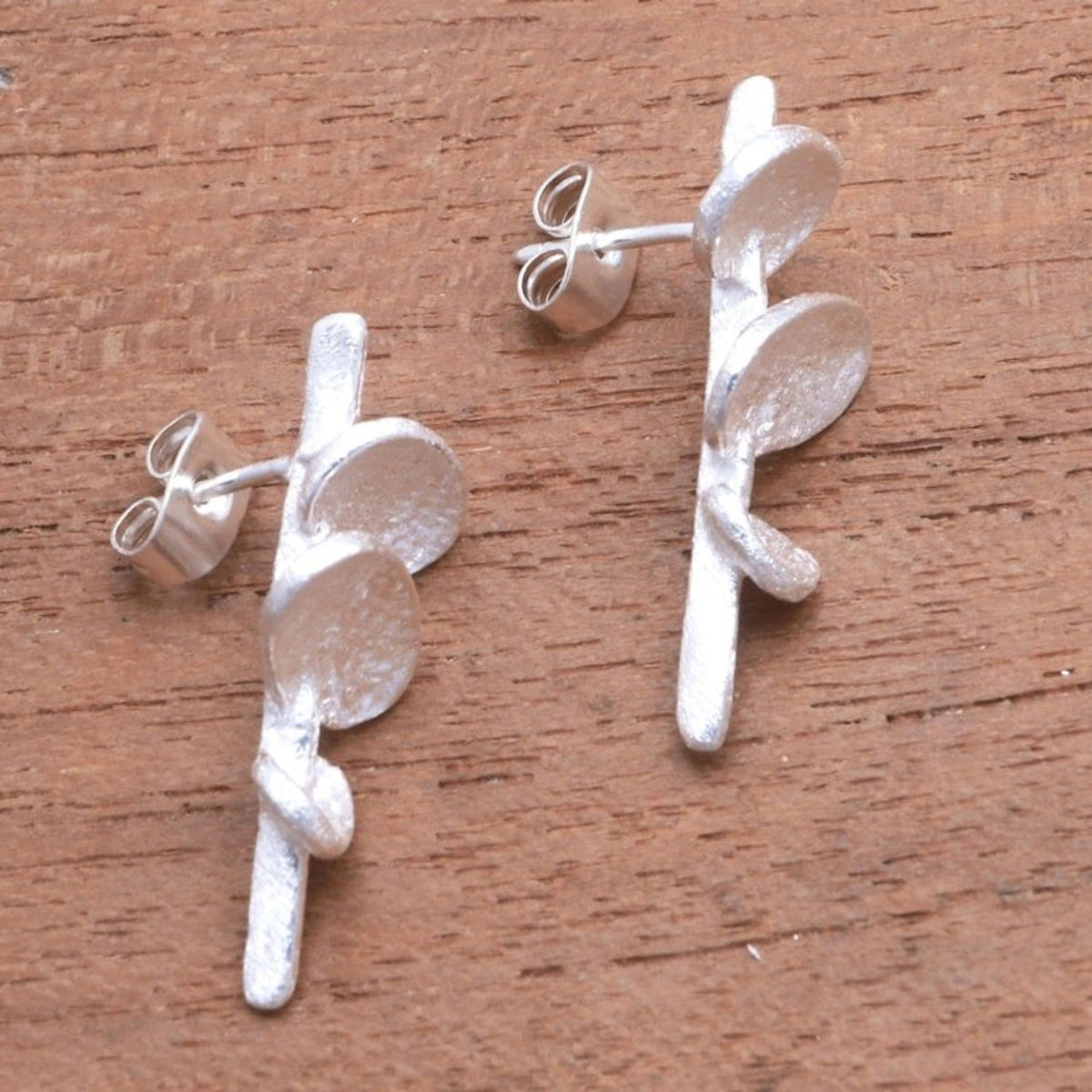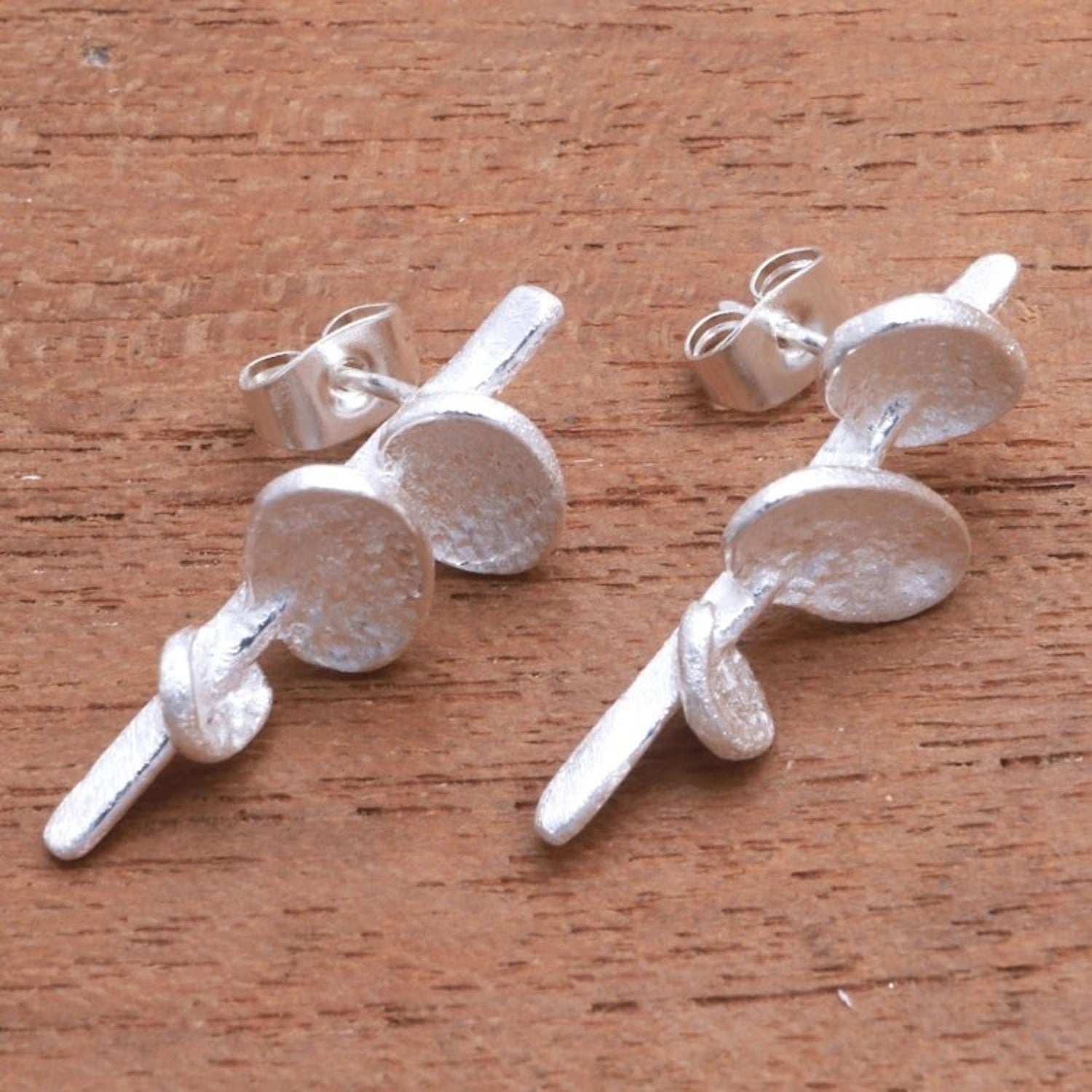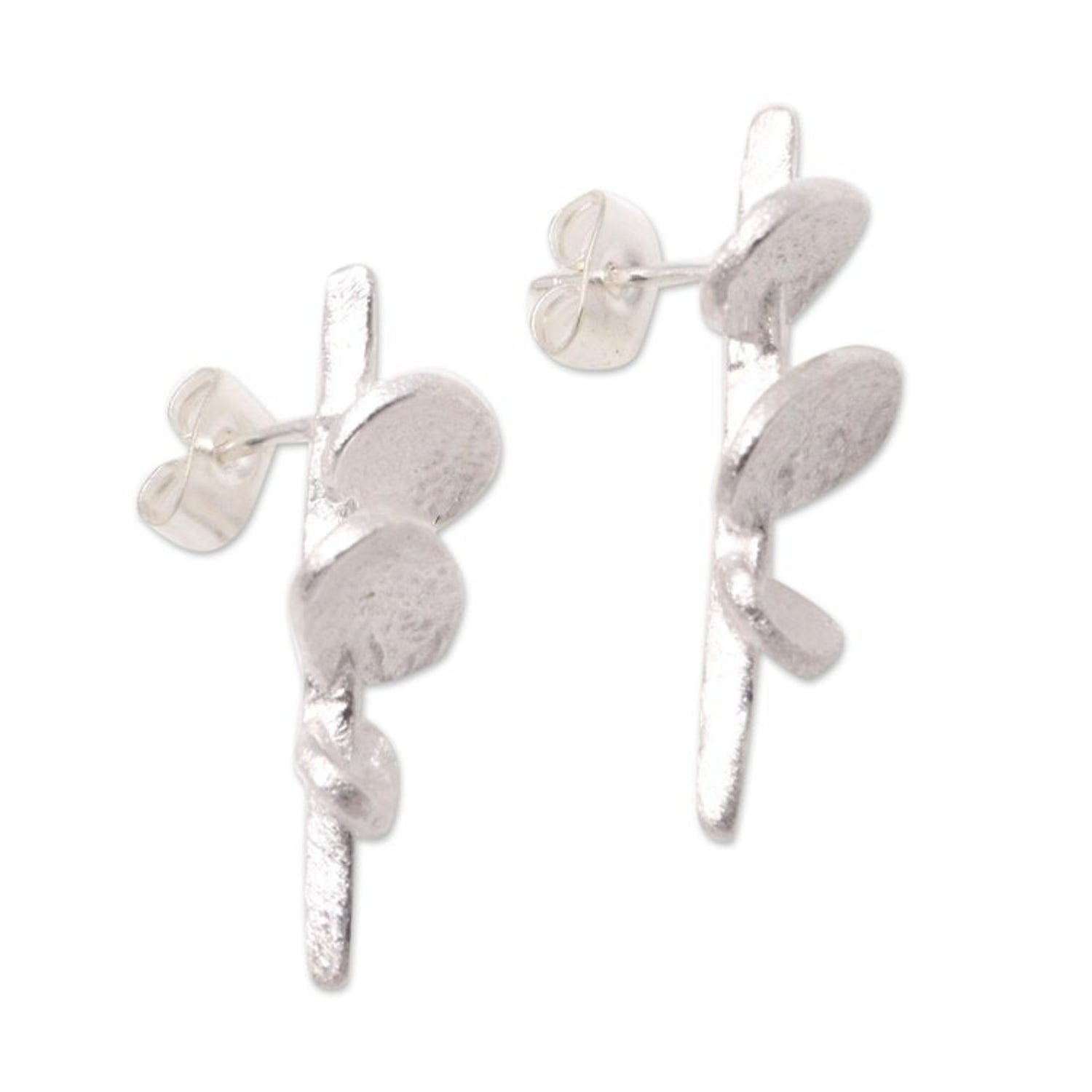Handcrafted in Indonesia, these earrings are made from 925 sterling silver with a brushed-satin finish. They measure 1 inch L x 0.4 inches W and secure with post clasps.