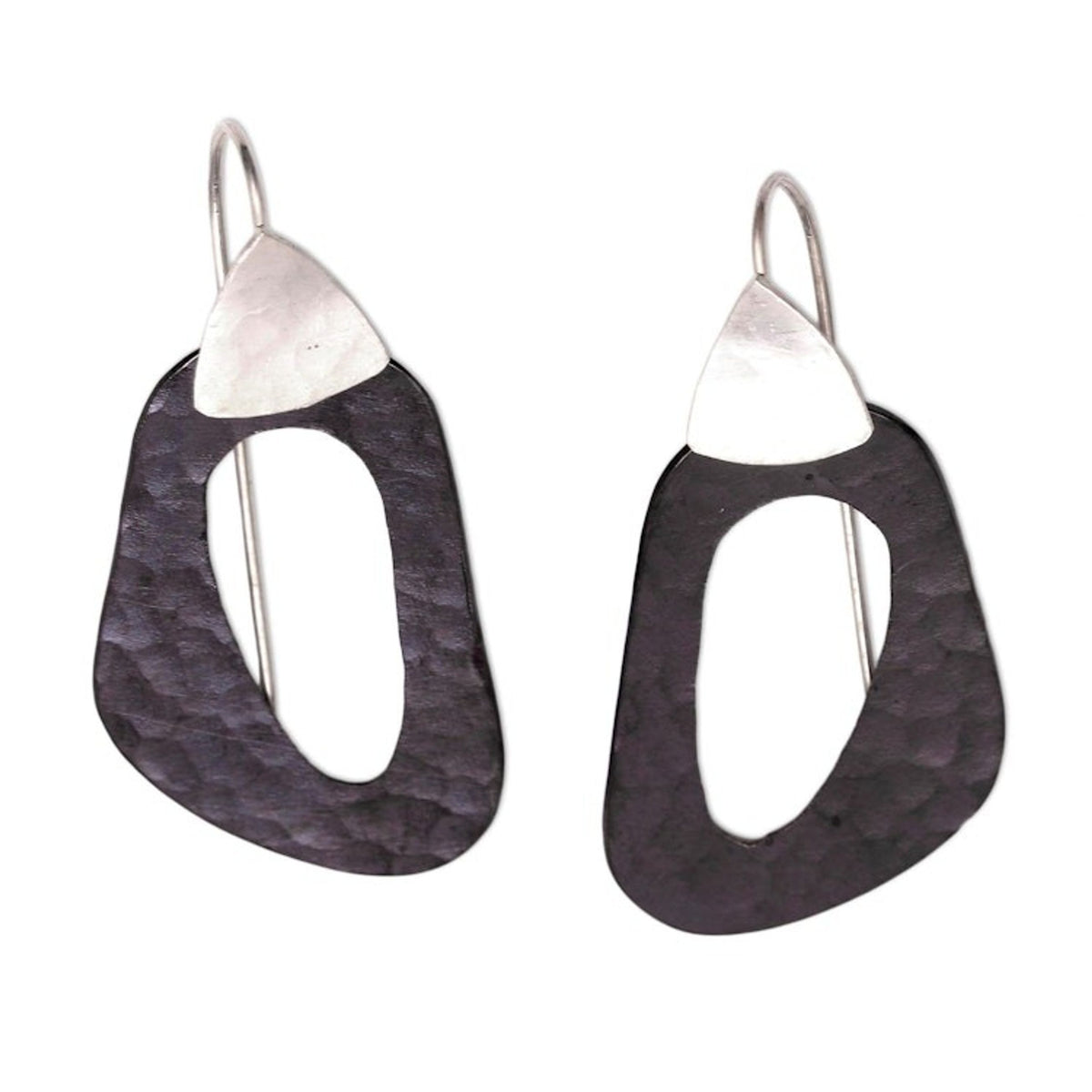 Abstract Sterling Silver and Dark Copper Dangle Earrings 'Dark Lakes'