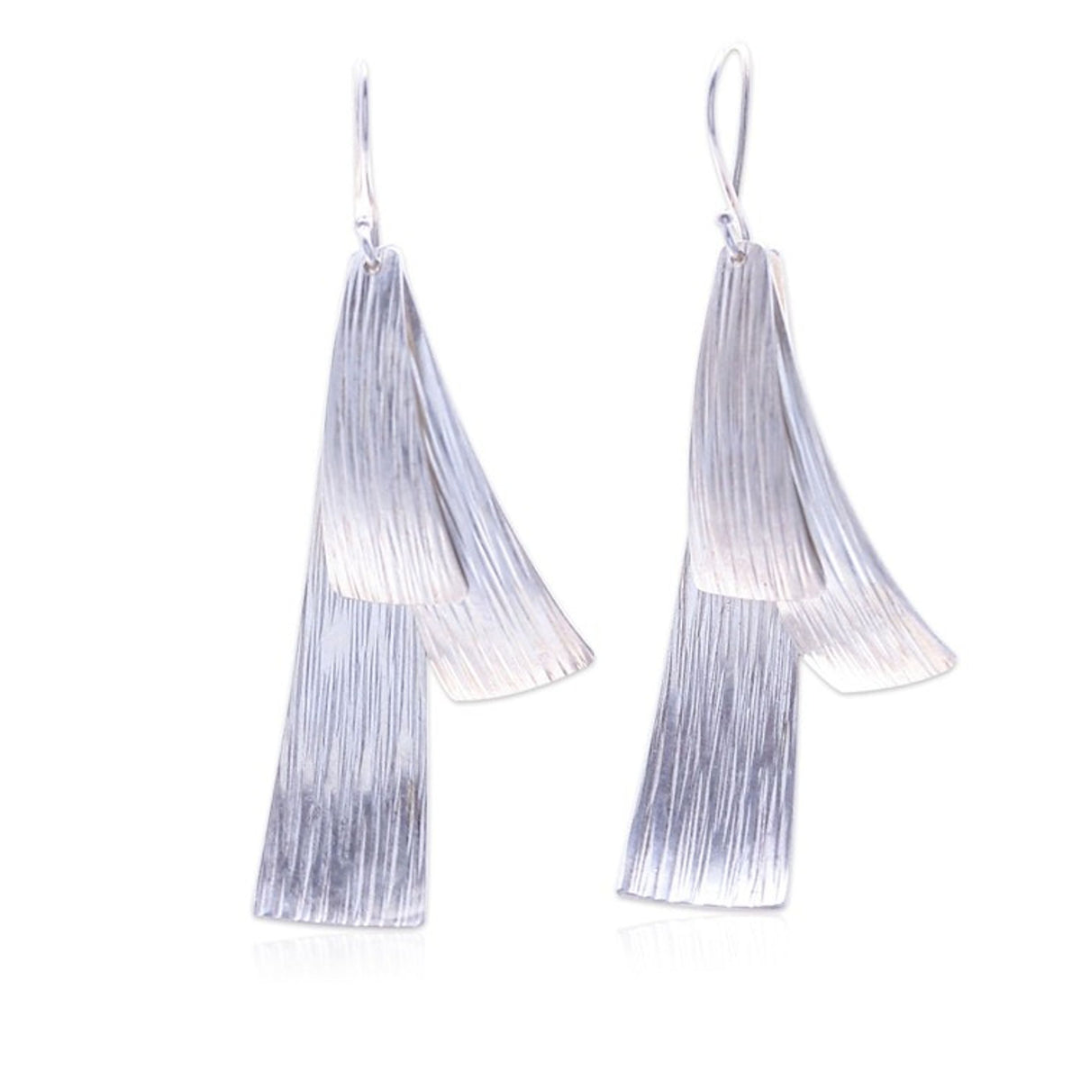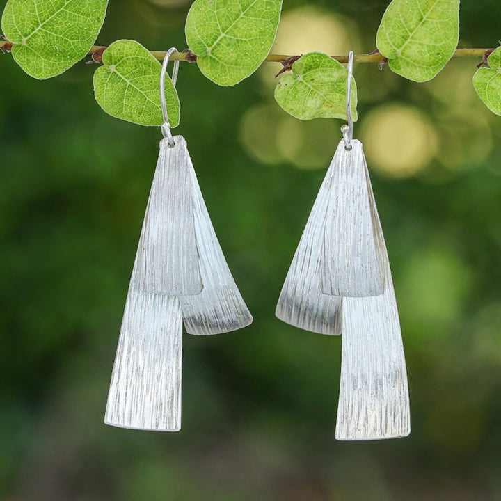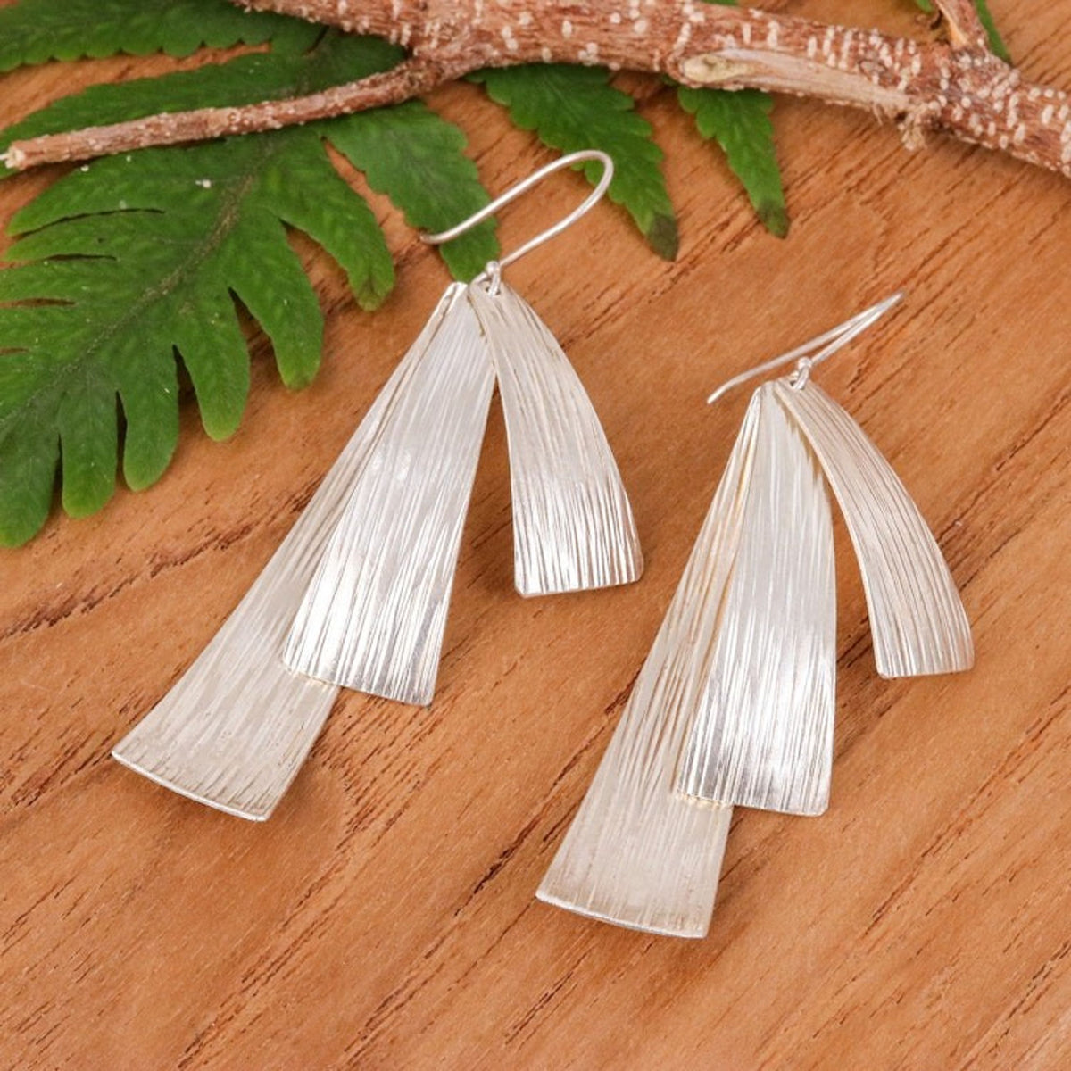 Handcrafted in Thailand, these earrings are made from 925 sterling silver. They feature a combination of finishes and secure with hook clasps. Dimensions are 2.6 inches L x 0.6 inches W.