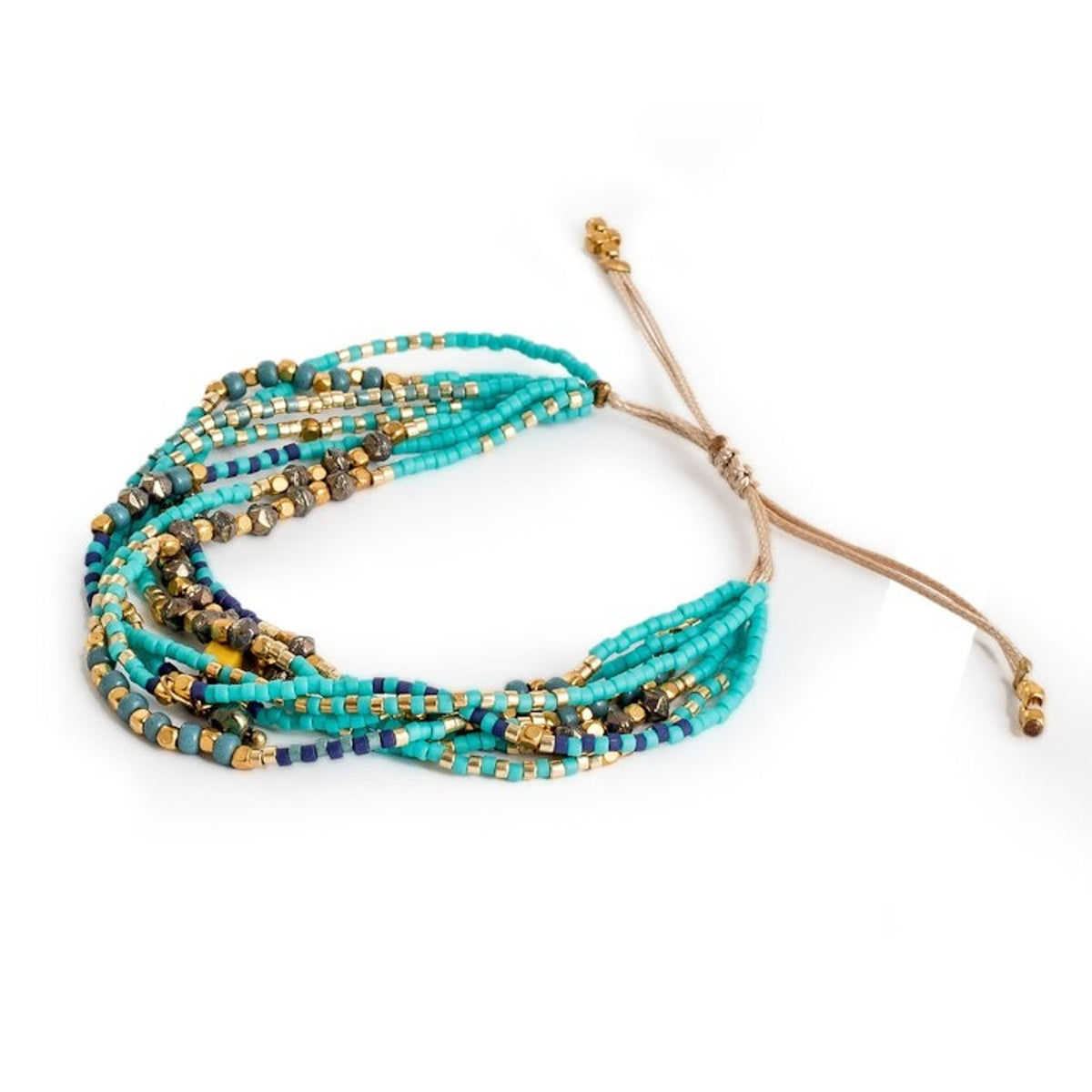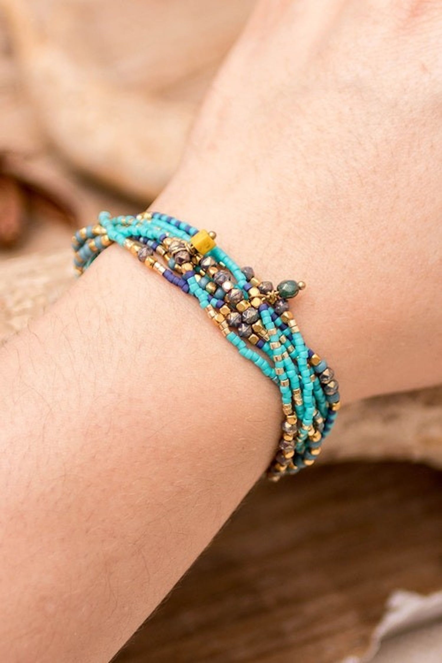 Adjustable Handcrafted Aqua Glass Beaded Strand Bracelet 'Trendy Aqua'