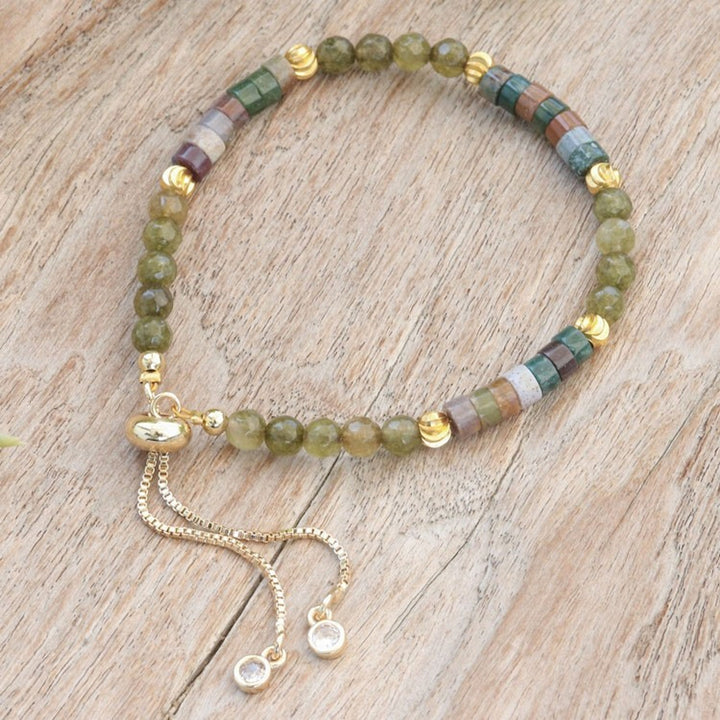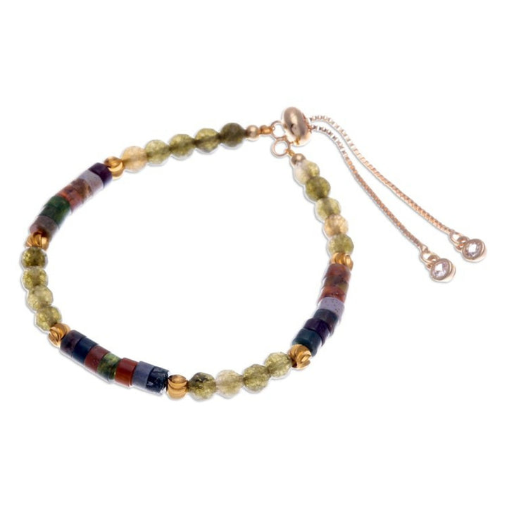 Agate and Quartz Beaded Adjustable Wristband Bracelet 'Vibrant Flair'