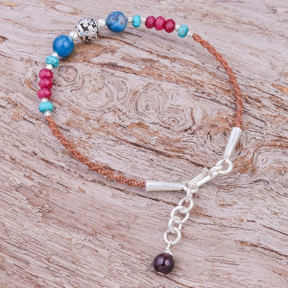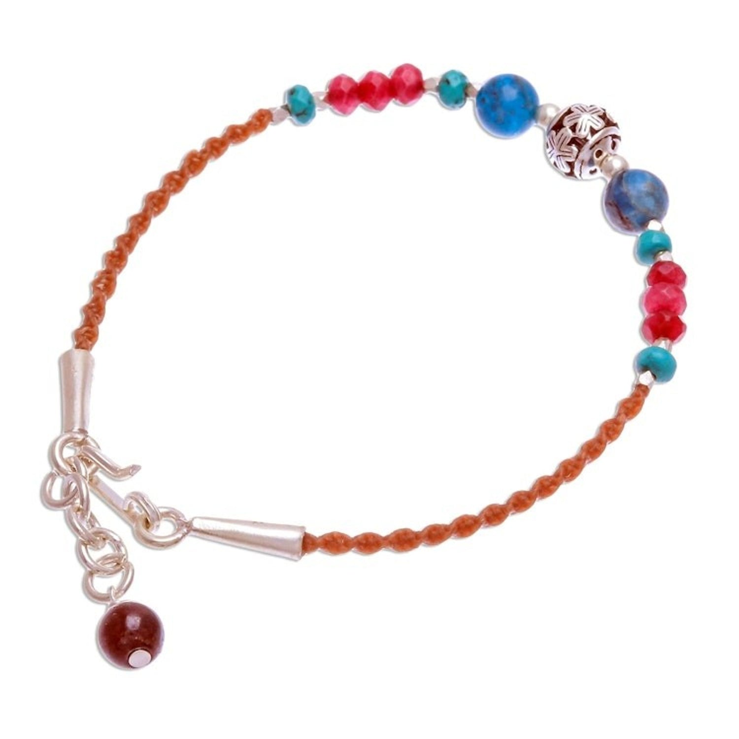 Handcrafted in Thailand, this bracelet is made from 925 sterling silver, 950 silver, agate, quartz, reconstituted turquoise, and waxed polyester cord. It features a combination finish and an S-hook or hook clasp. The bracelet is 7 inches L, with a 0.6-inch extender.