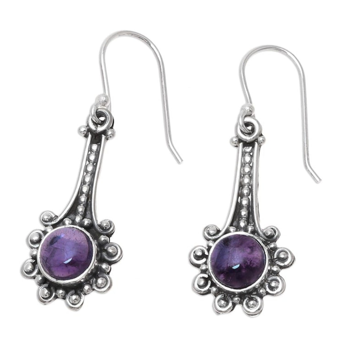 Amethyst and Sterling Silver Dangle Earrings from India 'Magical Pendulums'