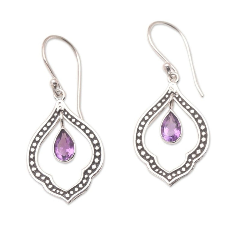 Amethyst and Sterling Silver Dangle Earrings from Indonesia 'Framed Raindrop'