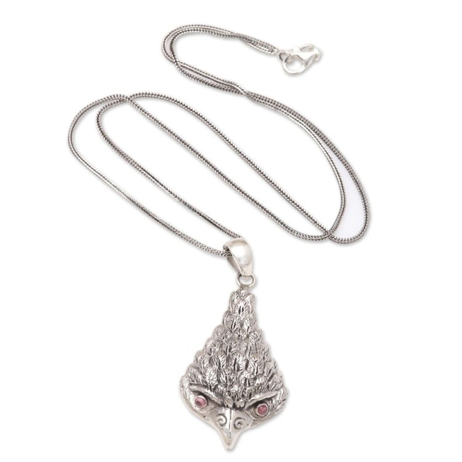 This Amethyst and Sterling Silver Owl Pendant Necklace 'All Knowing' is a smart necklace by Nyoman Rena. The pendant is crafted from sterling silver in a combination finish, with fine, feather-like details. Shining amethyst gemstones give the owl's eyes life and a watchful disposition. This piece captures both Balinese heritage and contemporary design, and it is a testament to his dedication to growth and innovation.