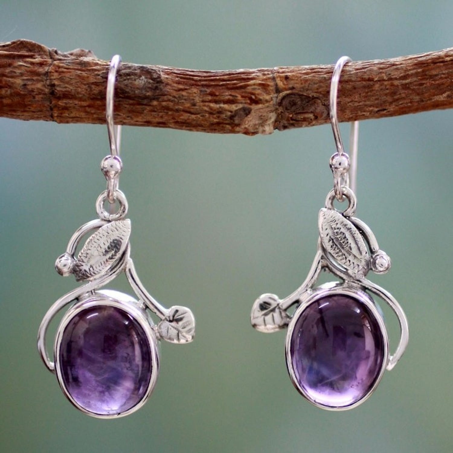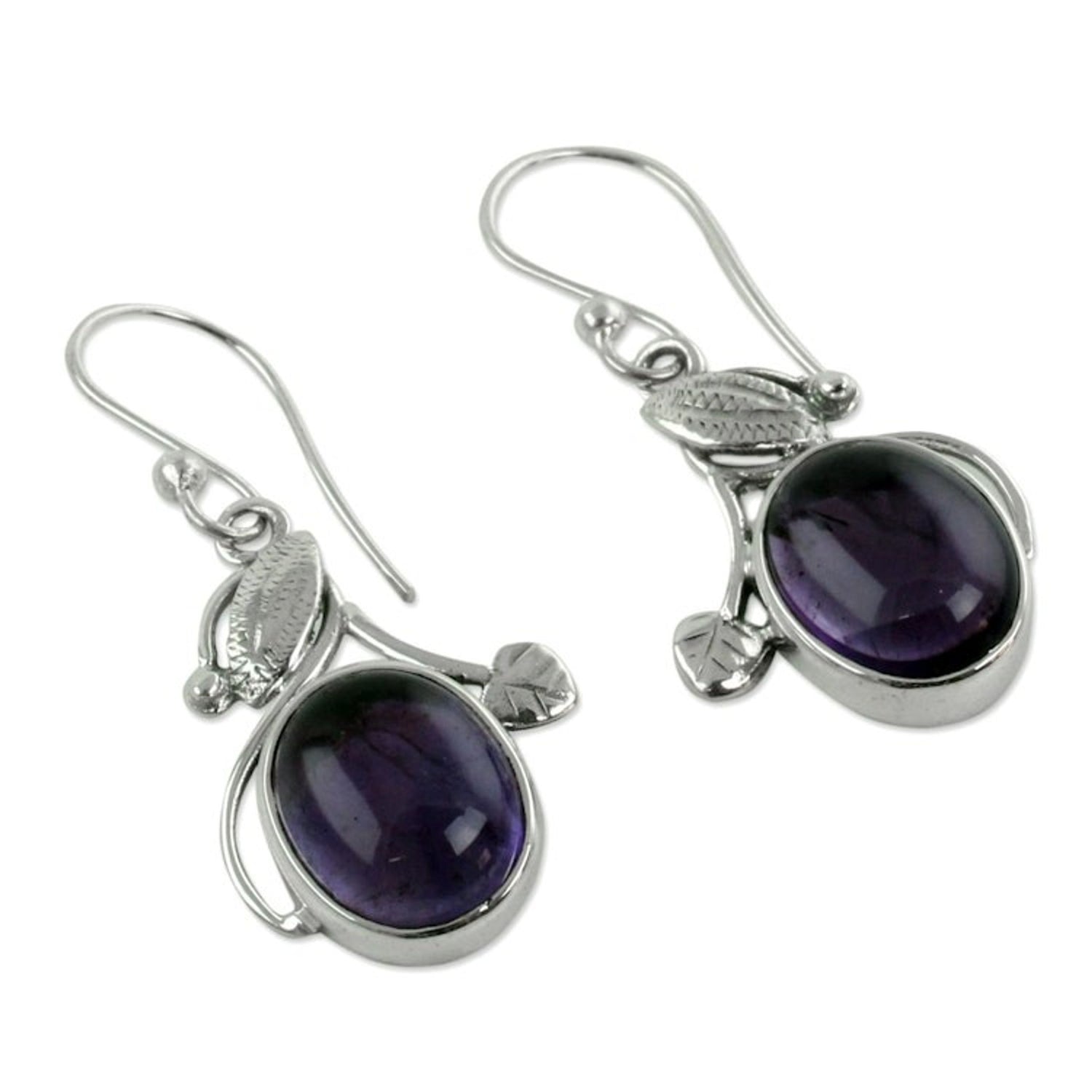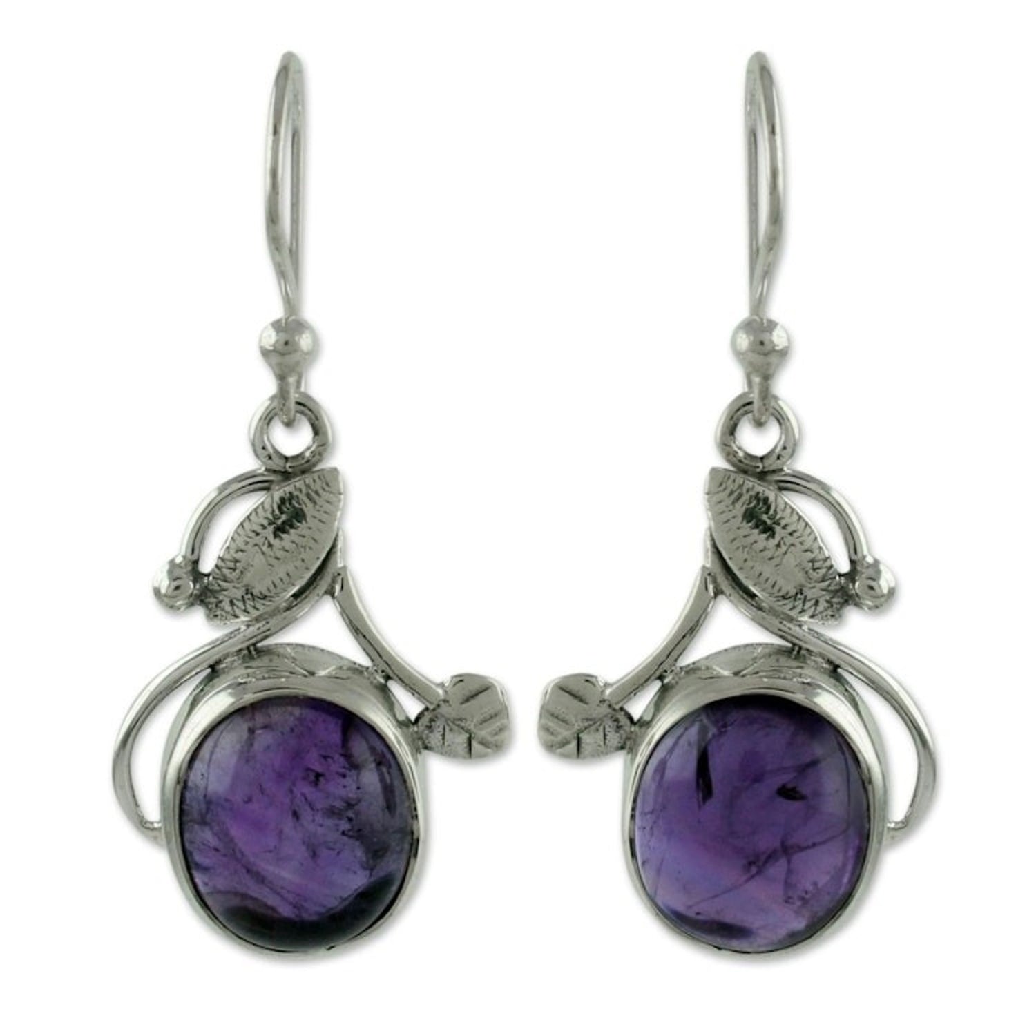 Handcrafted in India, these earrings are made from sterling silver and amethyst. They feature a combination finish, measure 1.4 inches L x 0.6 inches W, and secure with hook clasps.